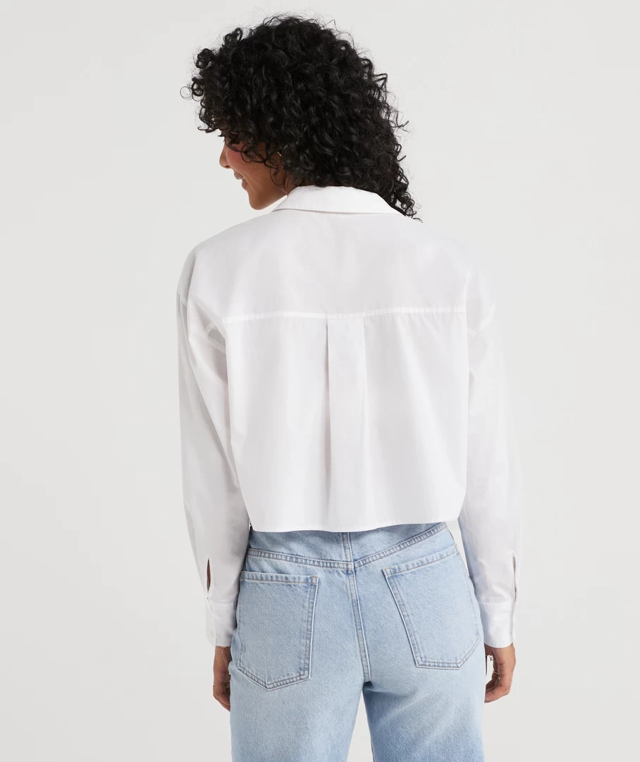Your fave shirt with a new twist, featuring a classic shape with a cropped length. Featuring a button closure and fulllength sleeves. Pair with anything high waisted for the perfect fit.