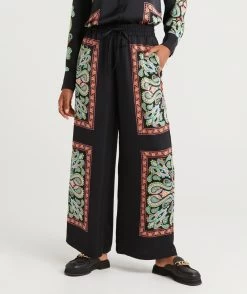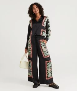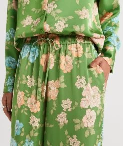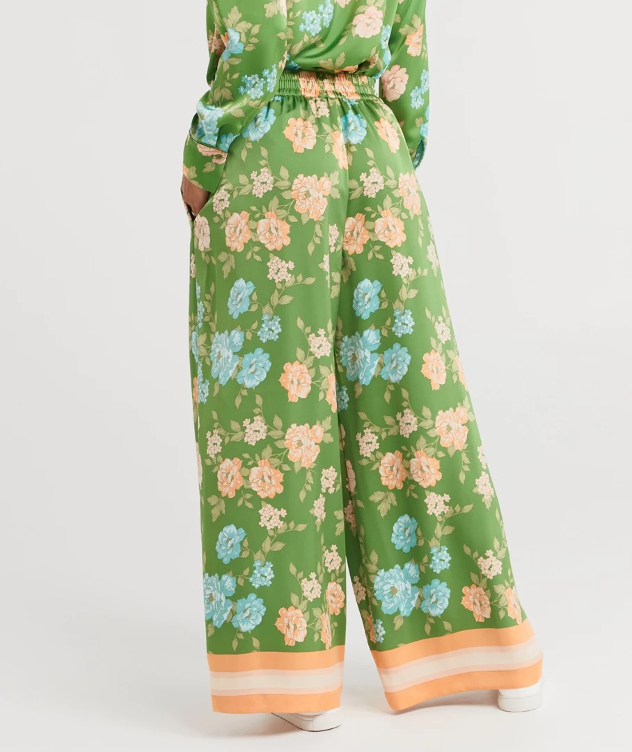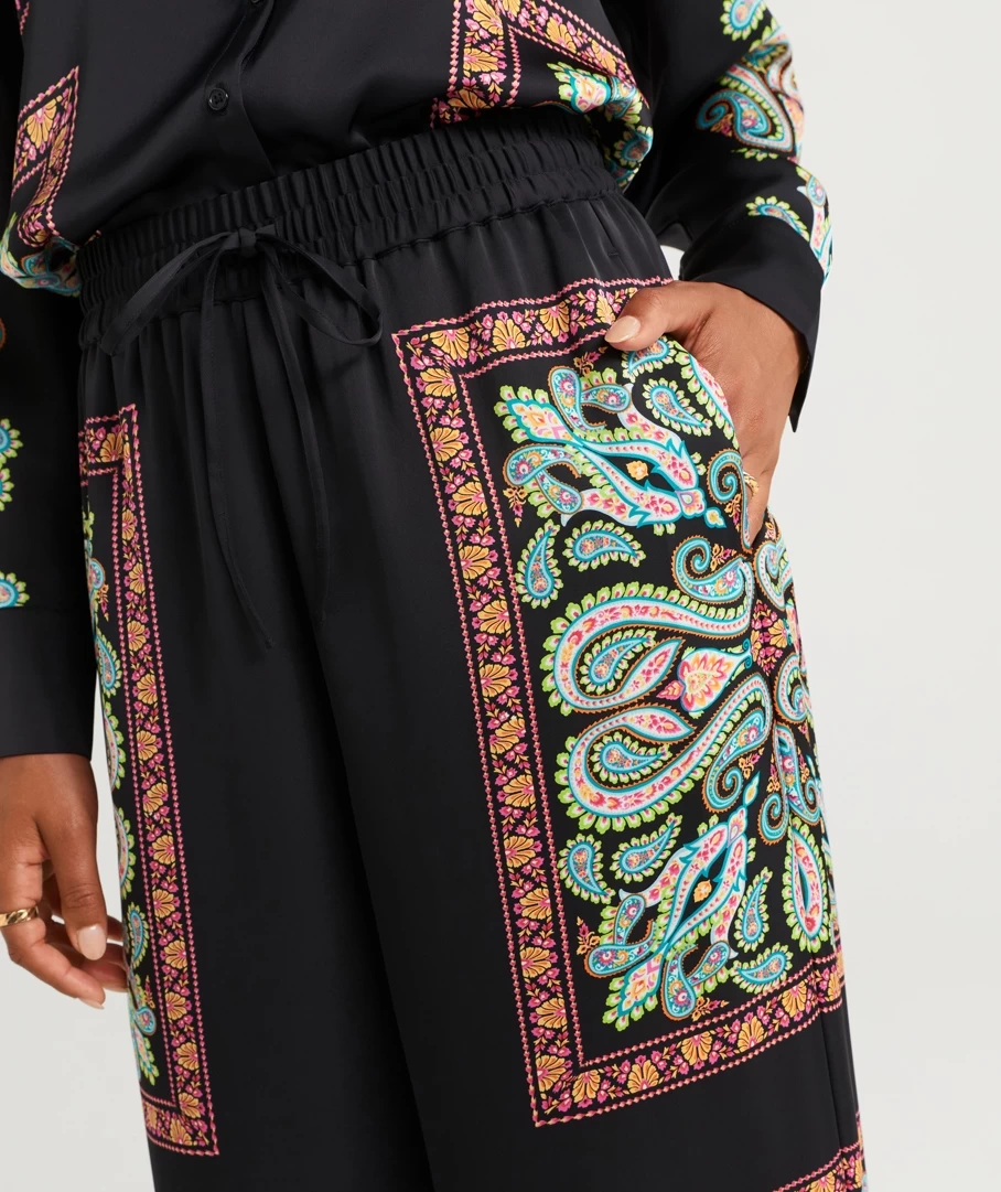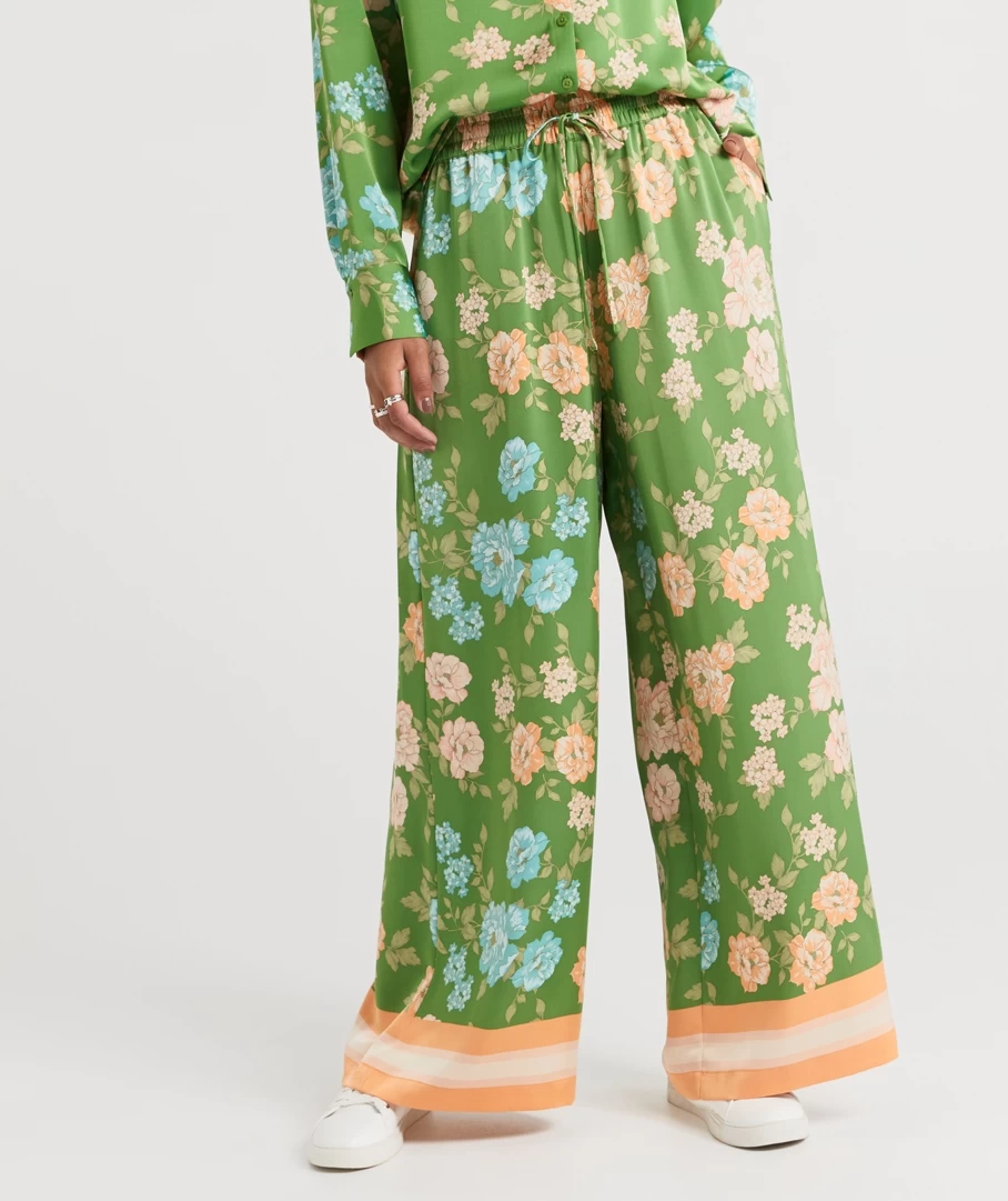 Dress it up or dress it down with the Aubree Satin Pant. With a relaxed shape, drawstring tie waist a fun print options. Perfect for wearing as a set or separately.