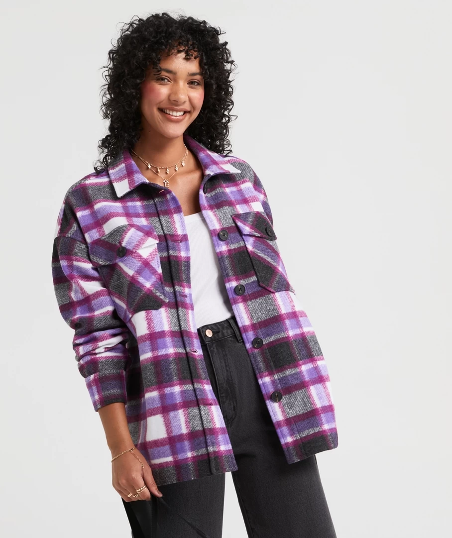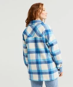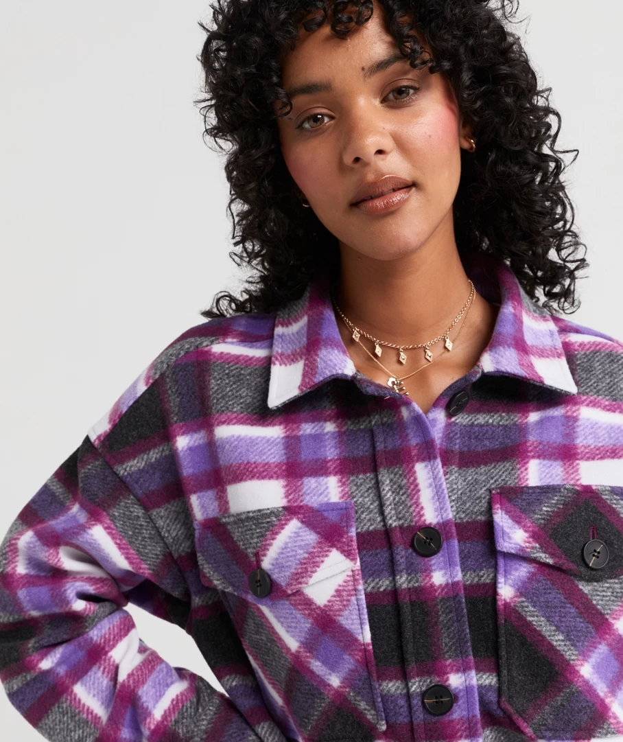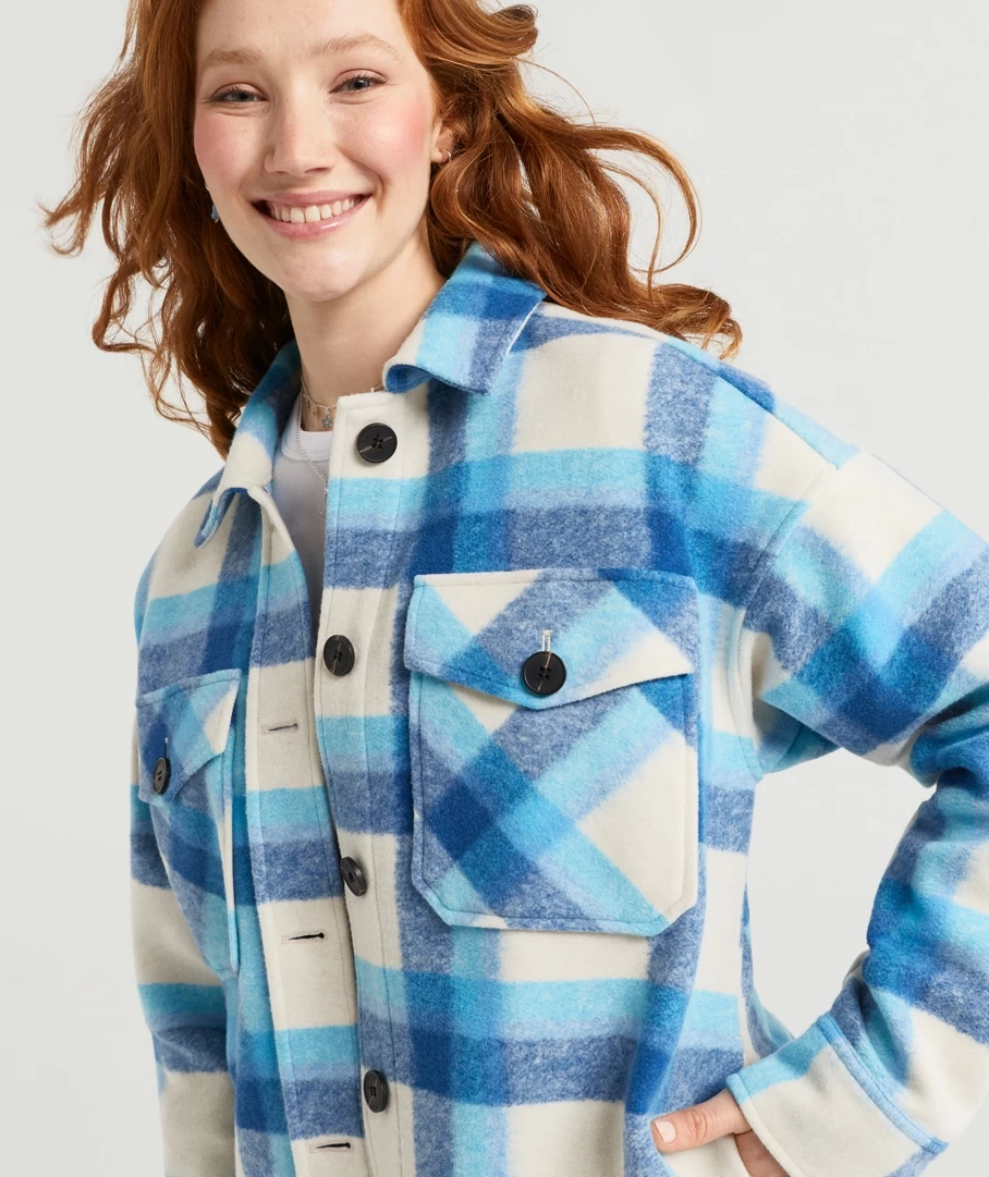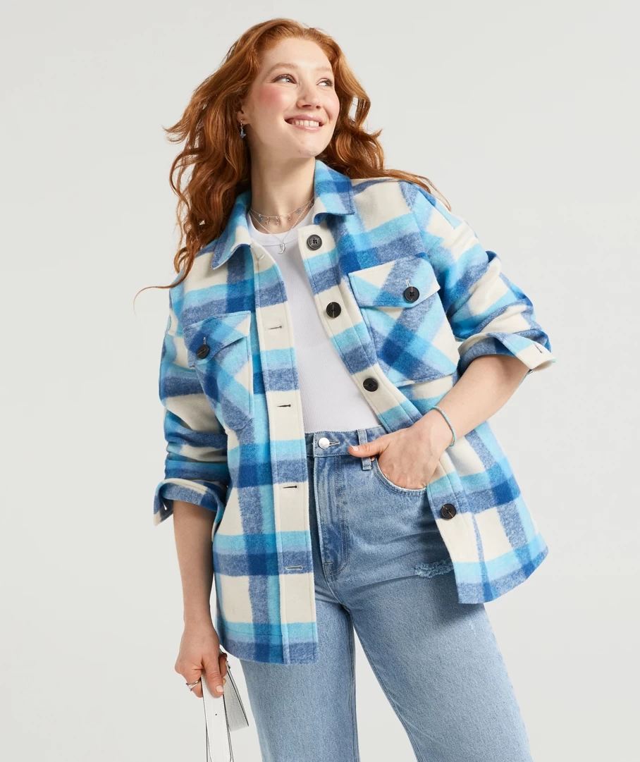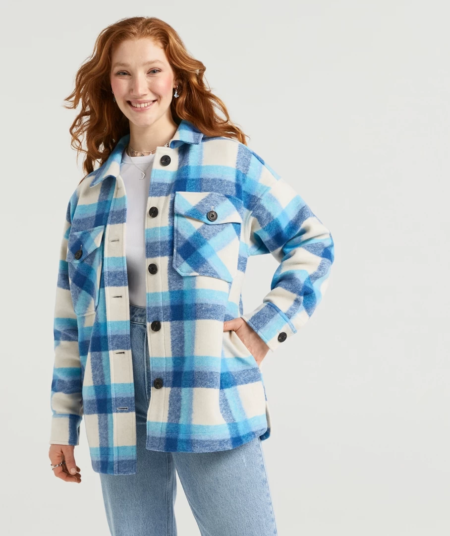 The Audrey Check Shacket is the perfect piece for those cooler days! Layer over dresses, pair with denim or even wear it buttoned up to create multiple different looks. Featuring front pockets, a blue print and button closure.