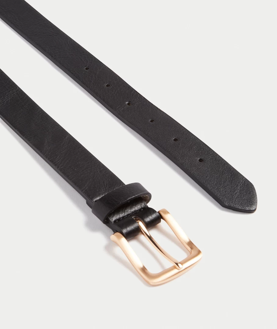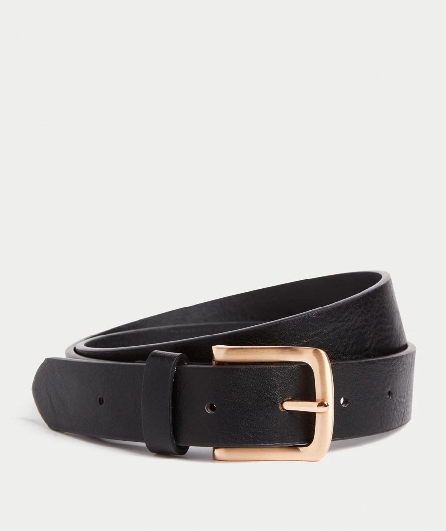The Aurora Belt is perfect for everyday wear. With a leather look all over, gold coloured rectangle buckle and one fabric belt hoop.