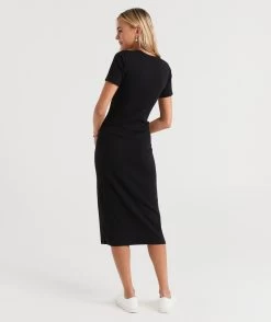 Australian Cotton Rib T Shirt Midi Dress is the timeless little black dress you need in your wardrobe. Made with cotton blend, midi length, stretchable and breathable. Pair with the Dru Cord Jacket for a casual look or dress it up with a blazer for work.