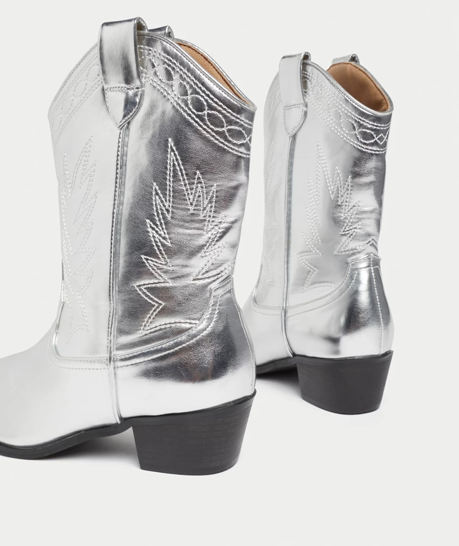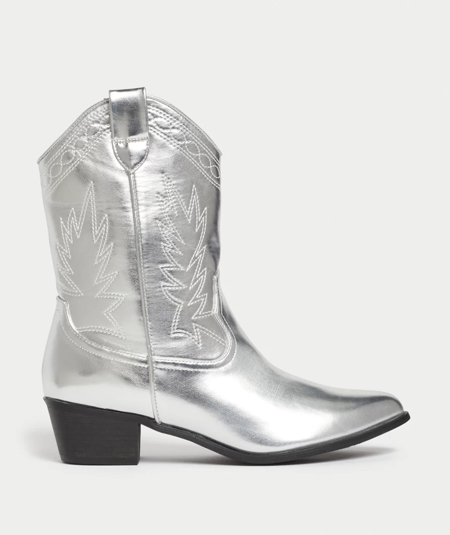 The western boot you will be wearing all year round, the Bailey Western Boot! Made with a silver PU, mid-lower calf height, pointed toe and also available in a tan colour. Perfect for styling with dresses or denim.