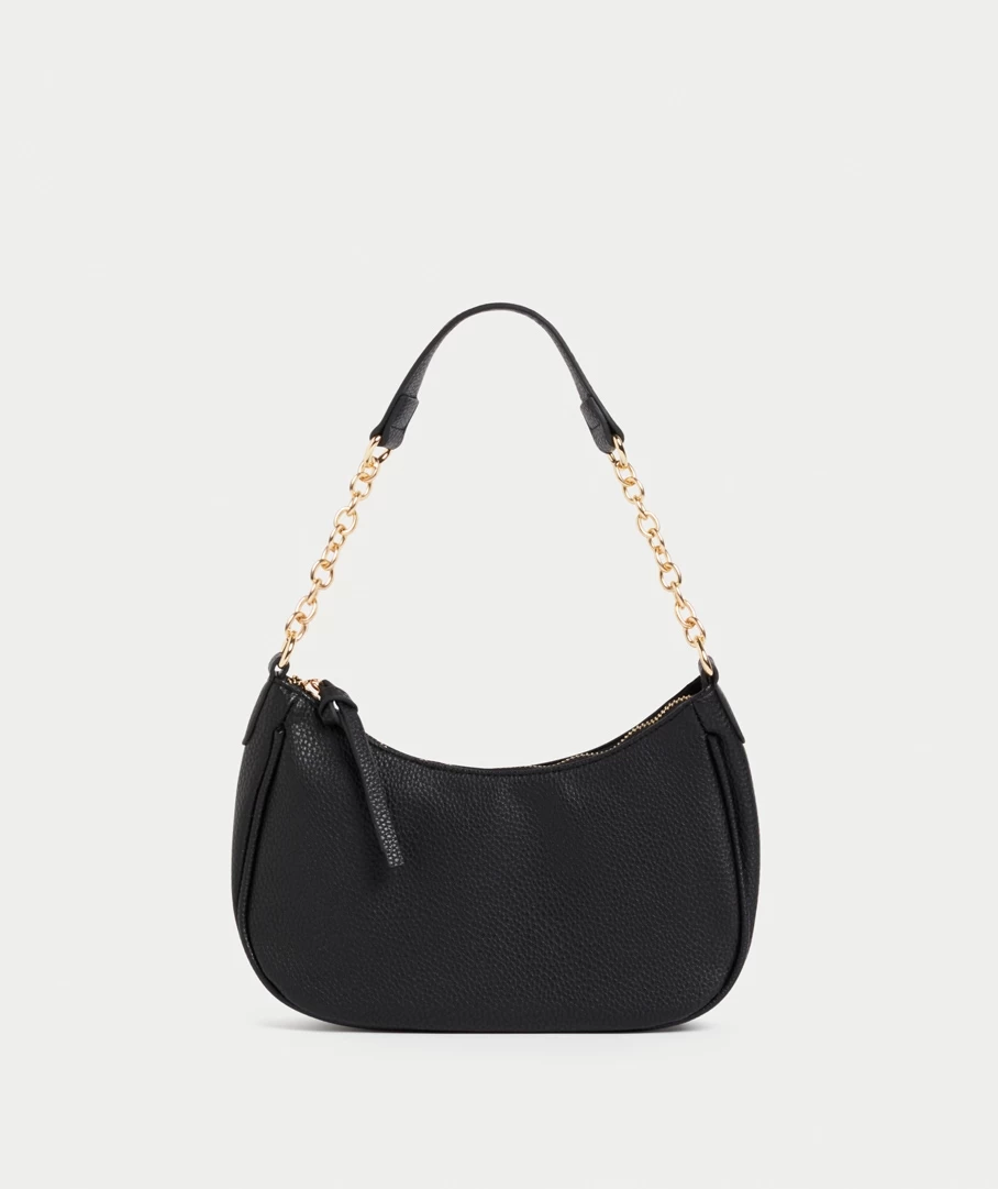 Elevate any look with the Blake Chain Shoulder Bag. Made with a faux leather, 90s shoulder bag shape, fabric and gold chain strap, internal zip pocket and zip closure.