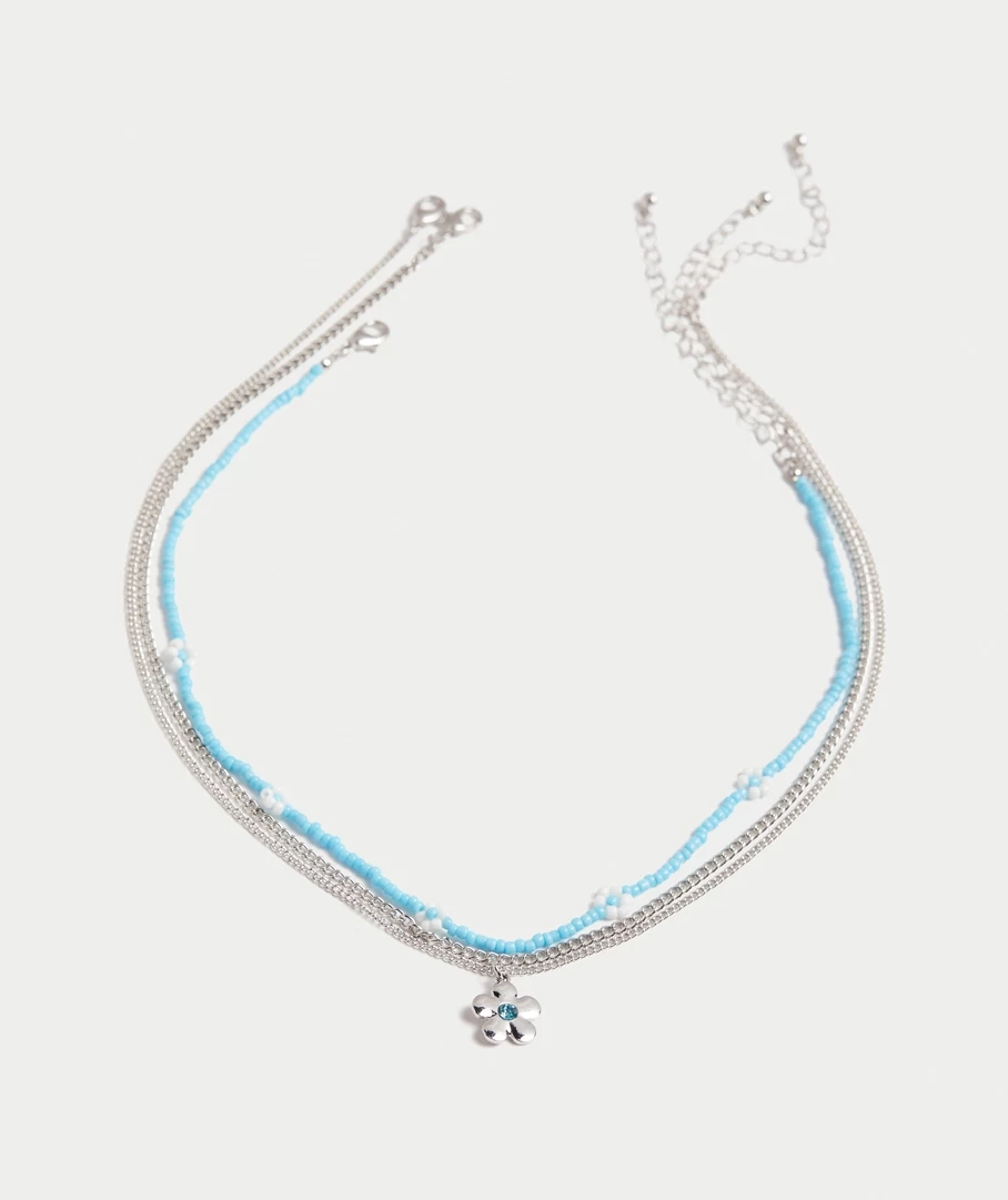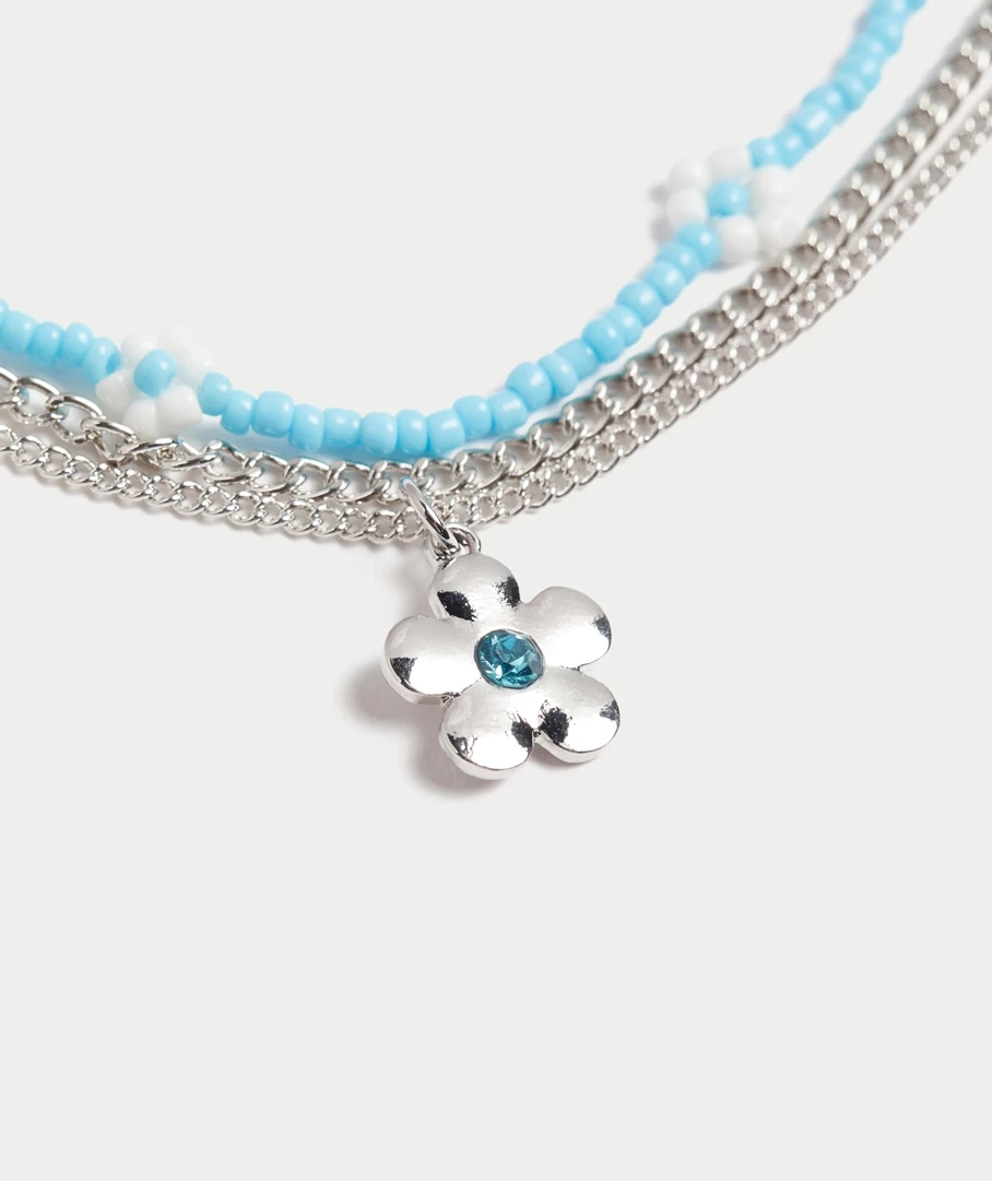 Layer it on with the Blue Flower Bead Necklace Pack. Made with blue and silver coloured metal, all in different designs.