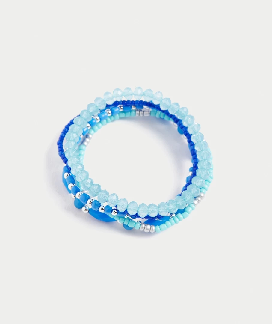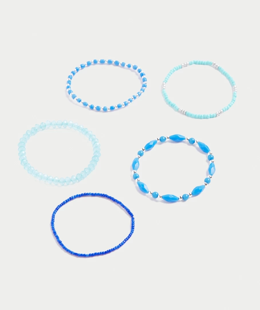 Layer it on with the Blue Mixed Bead Bracelet Pack. It features 4 bracelets all with different blue tone beads.