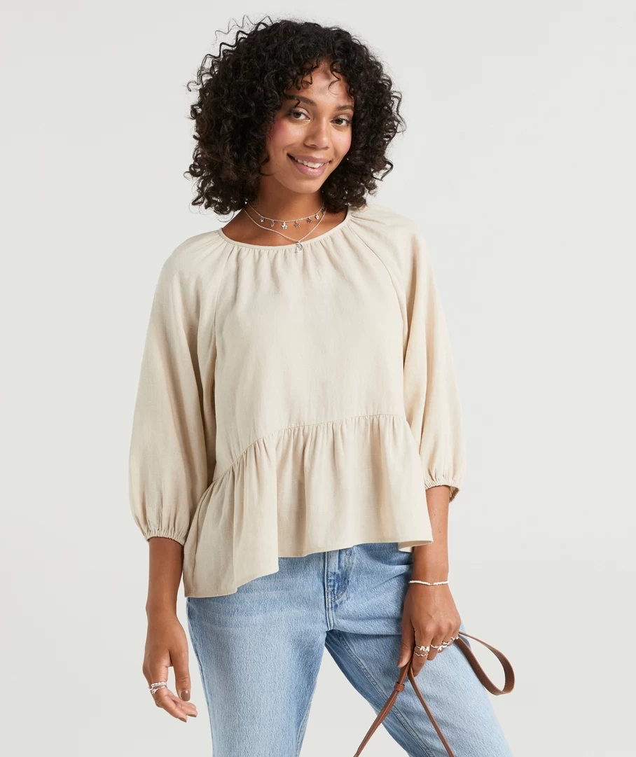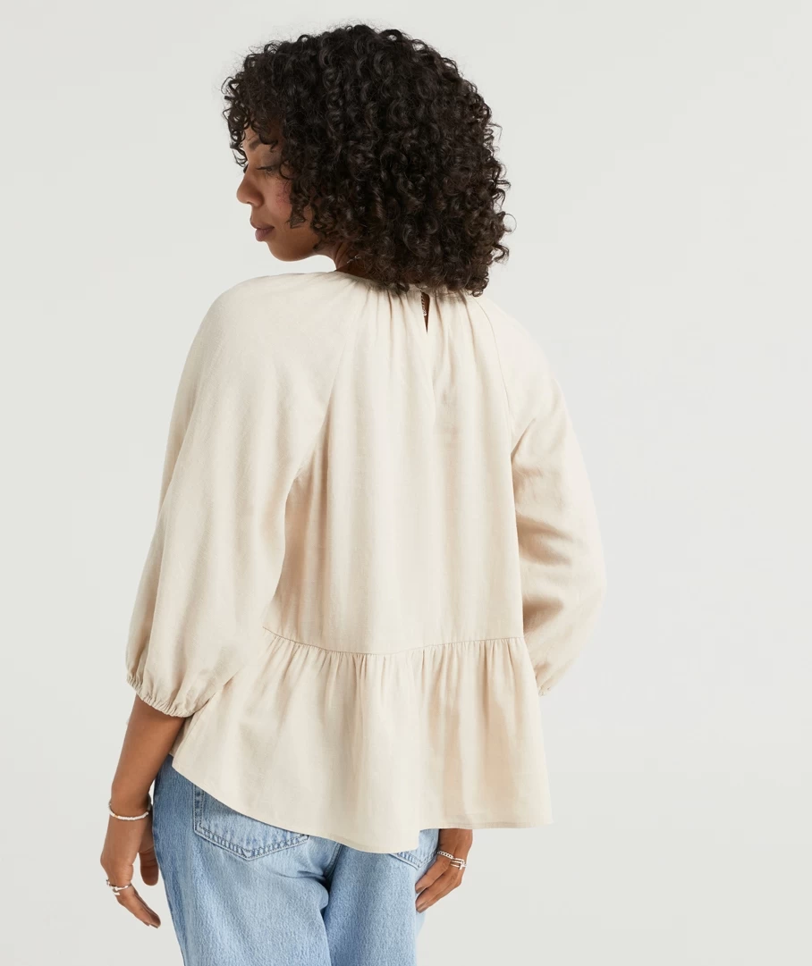 The loose fitting Brit Linen Raglan Top is made to wear with ease all season long. With a linen blend and a high neckline, this top is perfect to pair with your favourite pair of jeans !
