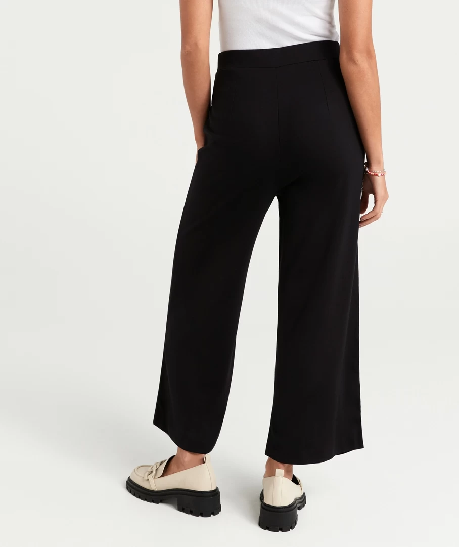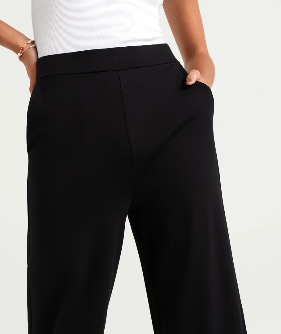Add to the essentials with the Brittany Ecovero Ponte Culotte Pants. Made with lightweight fabric, high waisted, elastic waist band, wide leg fit, soft texture and black colour. Pair with your fave shirt to complete your look. Made from ecovero viscose fibres, which has a lower environmental impact than generic viscose, it leaves water cleaner & has up to 50% less water impact.