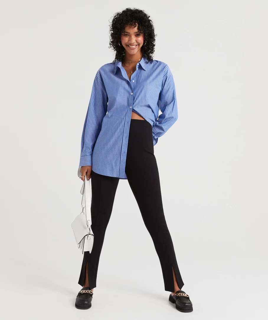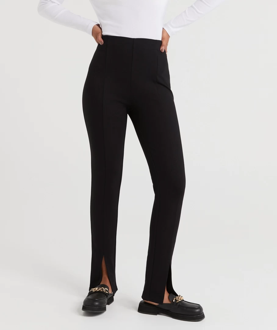 The Cara Ecovero Ponte Split Front Pants are a wardrobe essential! A high waisted, full length, split front pant made from a blend of lightweight fabrics. Pair with a blouse to elevate your look.