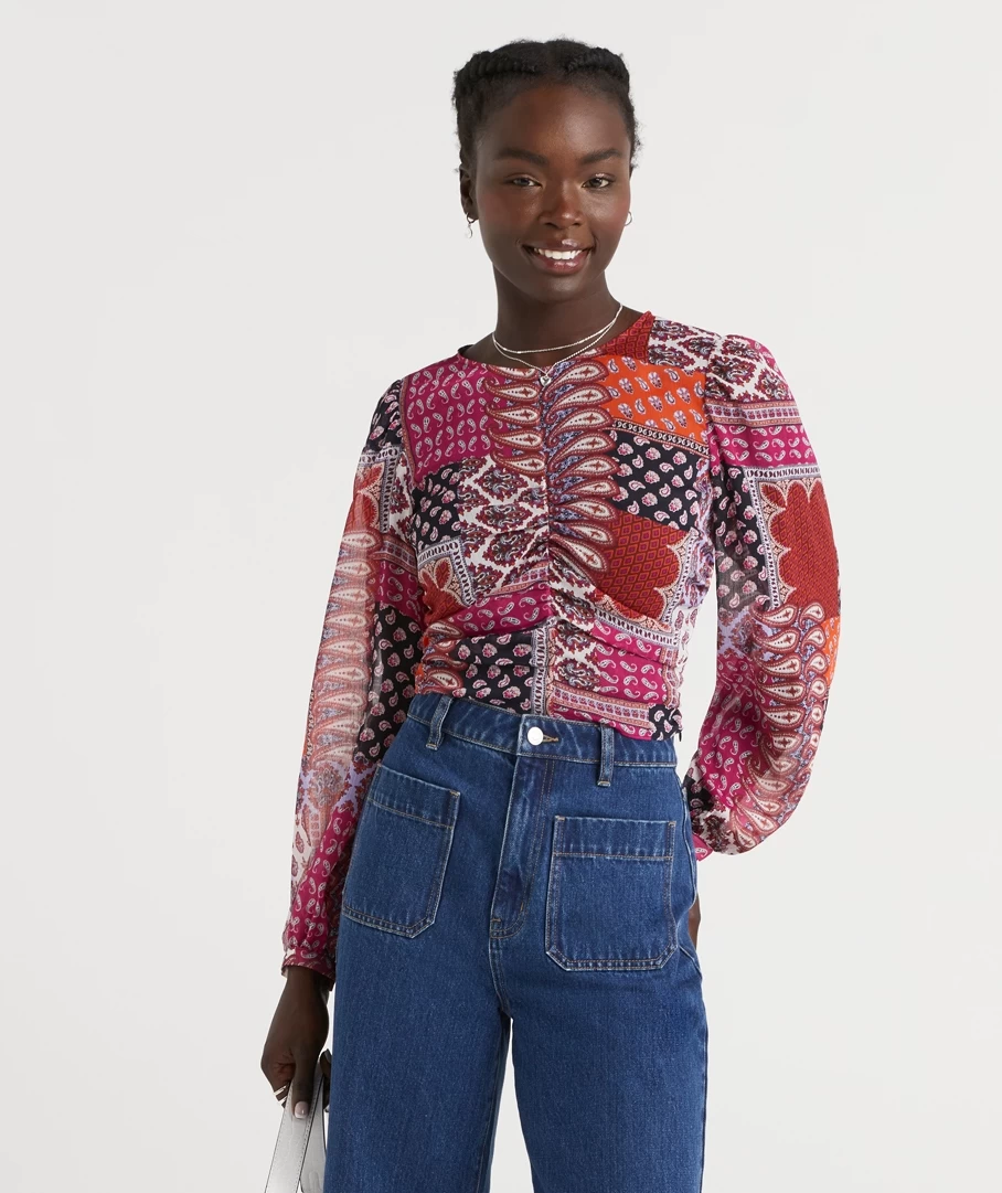 Its all in the print with the Celia Ruched Front Blouse! Full length sleeves, cropped length and paisley pattern. Pair with your fave jeans!
