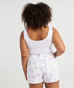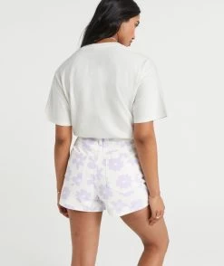We are obsessed with the Daisy Printed Denim Shorts and we trust that you will be too! With a stunning lilac floral print, they are sure to stand out from the rest. Made with 100% cotton, high waisted, 5 pockets, slim fit at the thighs and fitted at the waist/ hips and with a front zip and button closure. Pair with a graphic tee for a casual look.