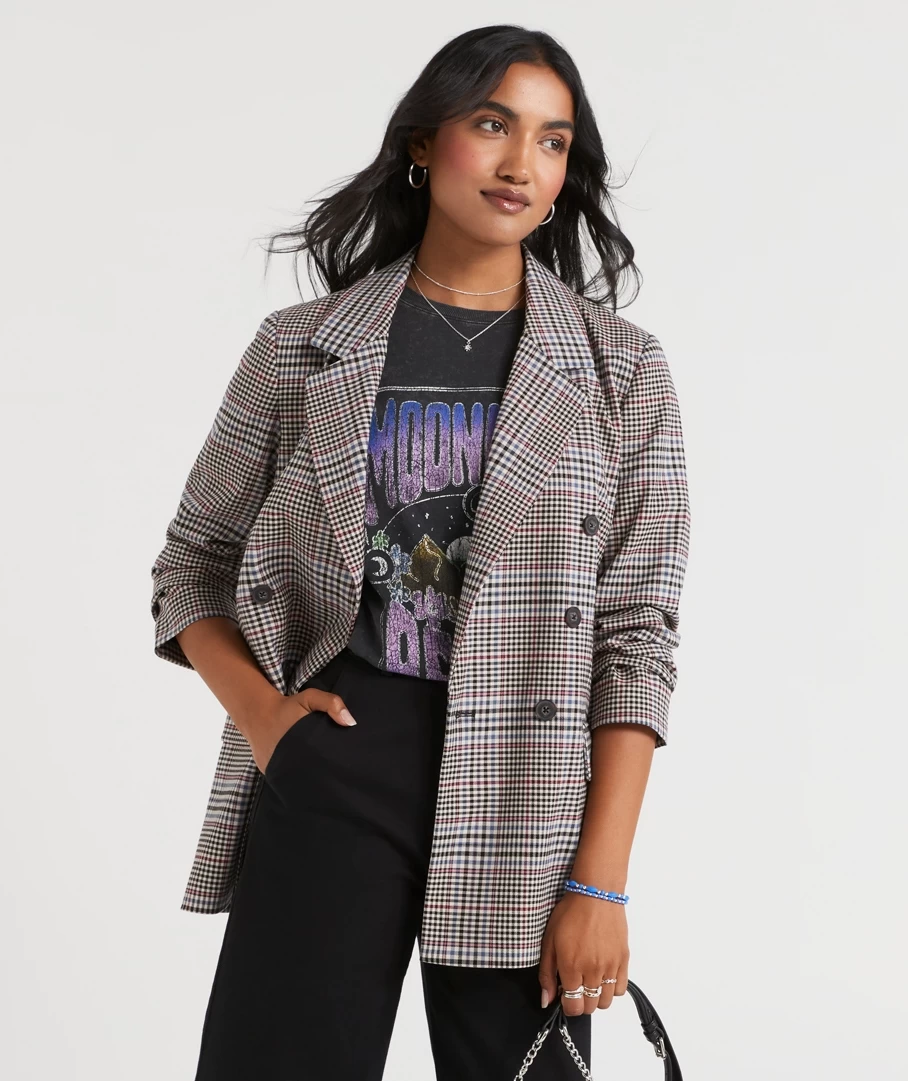 You will be reaching for the Dallas Check Blazer all season long. The classic blazer, with long sleeves, button closure and front pockets. Pair with pants or denim for the weekend look.