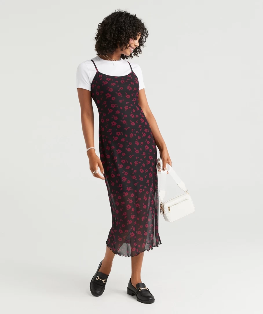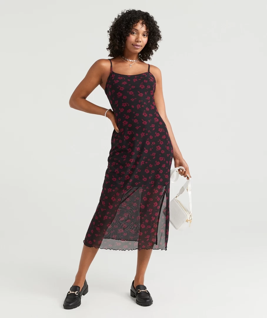 You will be reaching for the Dani Strappy Midi Dress all season long. Made with a lightweight mesh fabric, slim fit, lined to the knee and featuring a floral print. Layer with a plain t-shirt for a casual look or style with heels for a dressy outfit.