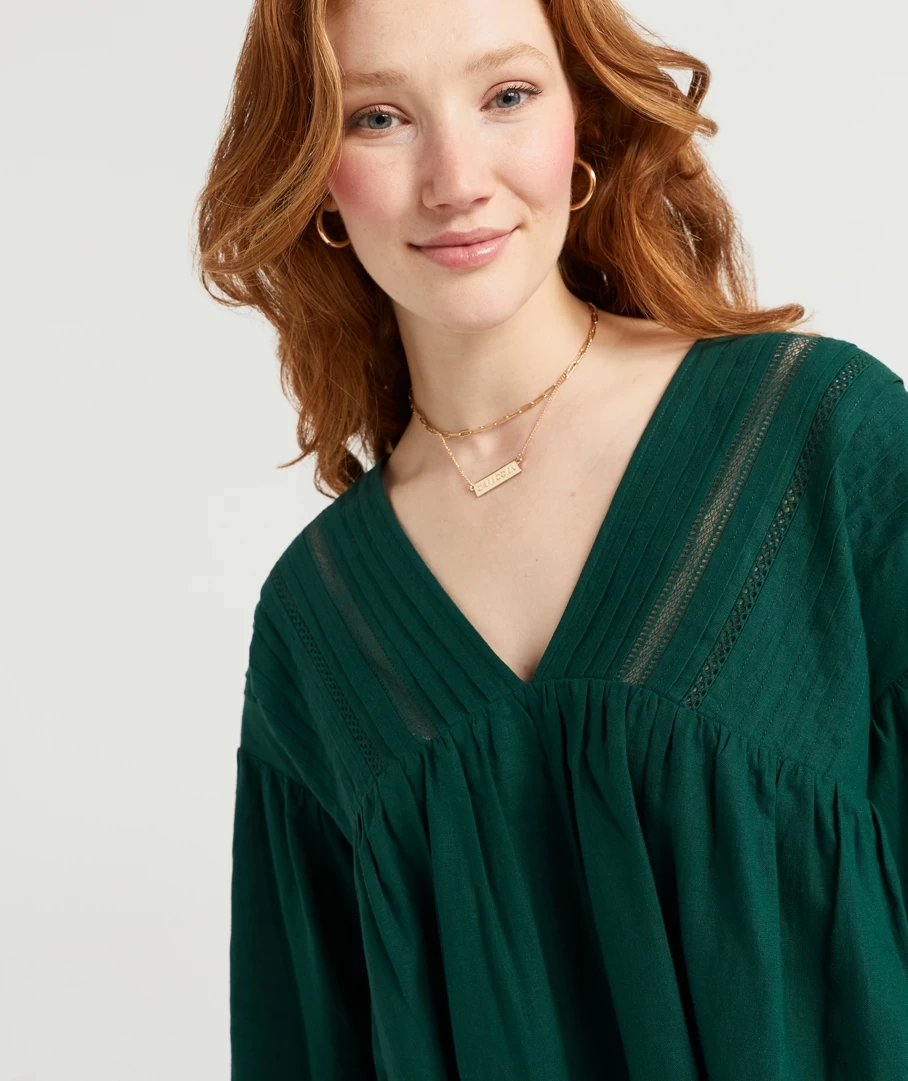 We love a classic! The Danica Linen V Neck Blouse is perfect for any occasion. The blouse features a detailed V neck, full length sleeves and a loose fit. For a casual look, style with your fave jeans.