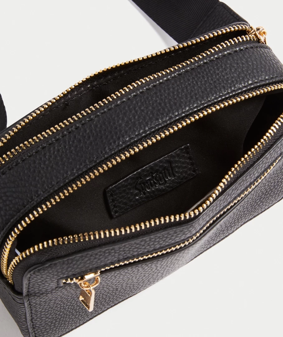 The Dillon Camera Crossbody Bag is a must have this season! Made with a leather look, nylon adjustable strap, rectangle shape, internal zip pocket, zip closure and gold coloured metal detail.