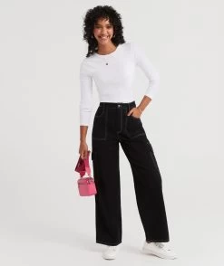 The Drew Cargo Straight Leg Pants are a must have this season. With a stunning green colour all over, these pants will quickly become your fave. They feature a high rise fit, straight leg from the waist down, 6 pockets and white stitching detail. Pair with your fave basic tee for a casual day look.