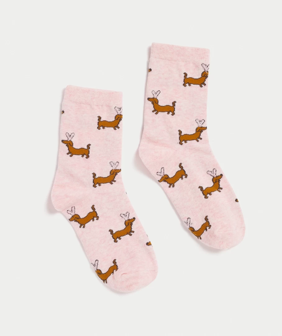 Add some fun to your easter outfit with the Easter Dachshund Crew Sock.