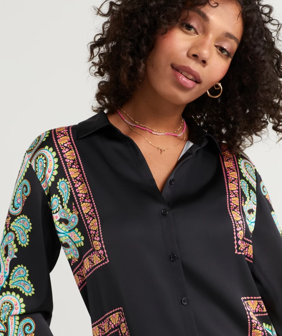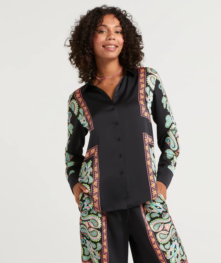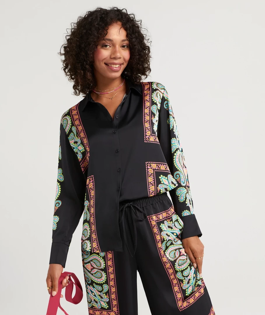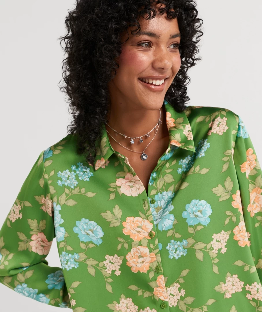 It is all in the details with the Evie Printed Satin Shirt! With a lovely floral and fun print, featuring a full length sleeve and button closure. Pair with the matching pants for a complete look.