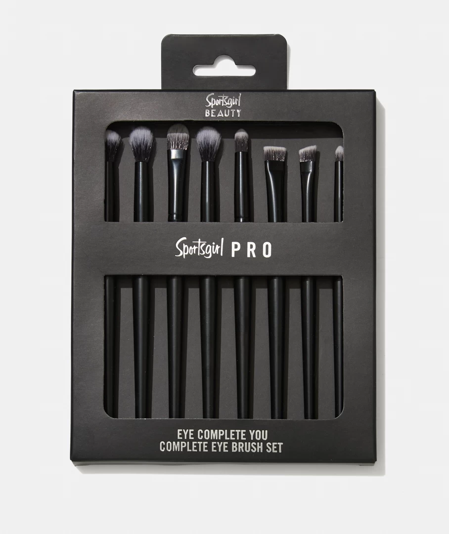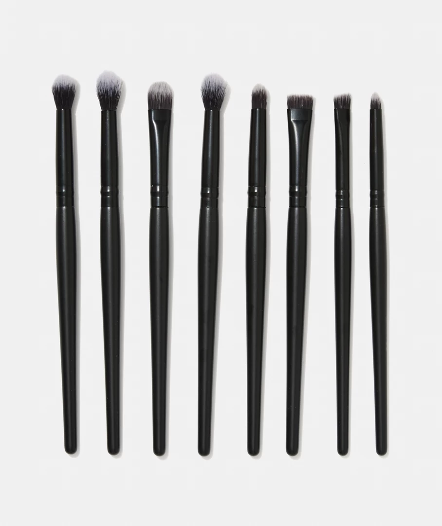 Complete your makeup look with the Eye Complete You – Complete Eye Brush Set. It features 8 thin eye brushes in a black colour and white writing. They are all designed to be used for eye makeup.