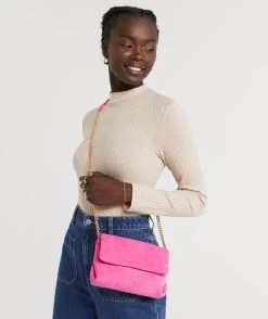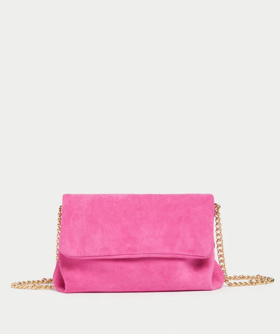 Add a pop of colour with the Faux Suede Chain Bag. Featuring a stylish gold brass chain, this will be your go-to handbag.