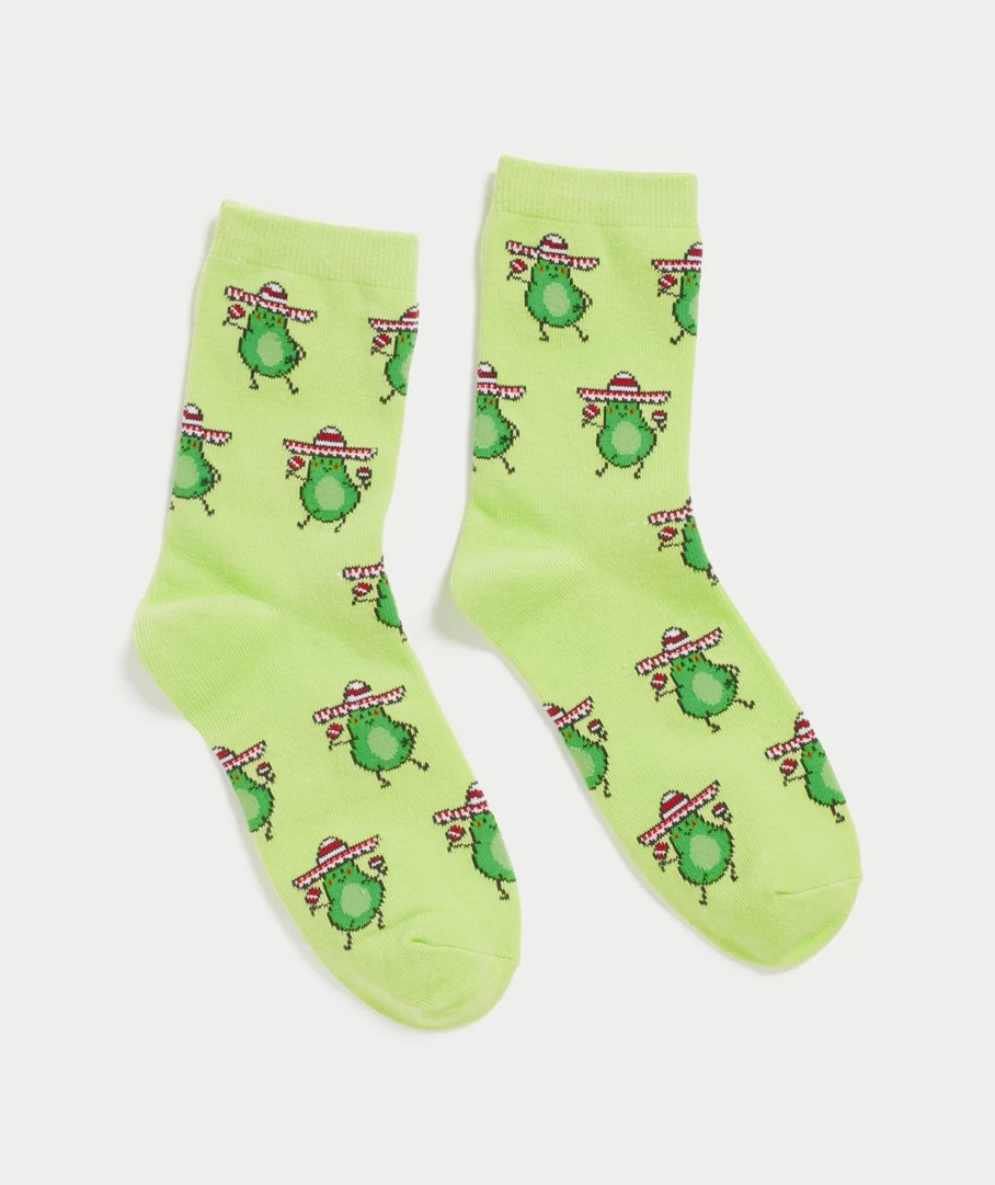 Treat your feet with the Fiesta Lime Avocado Crew Sock. These novelty crew socks will add some fun to your look. They feature avocados with