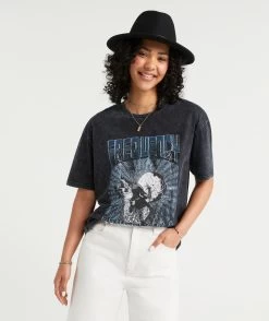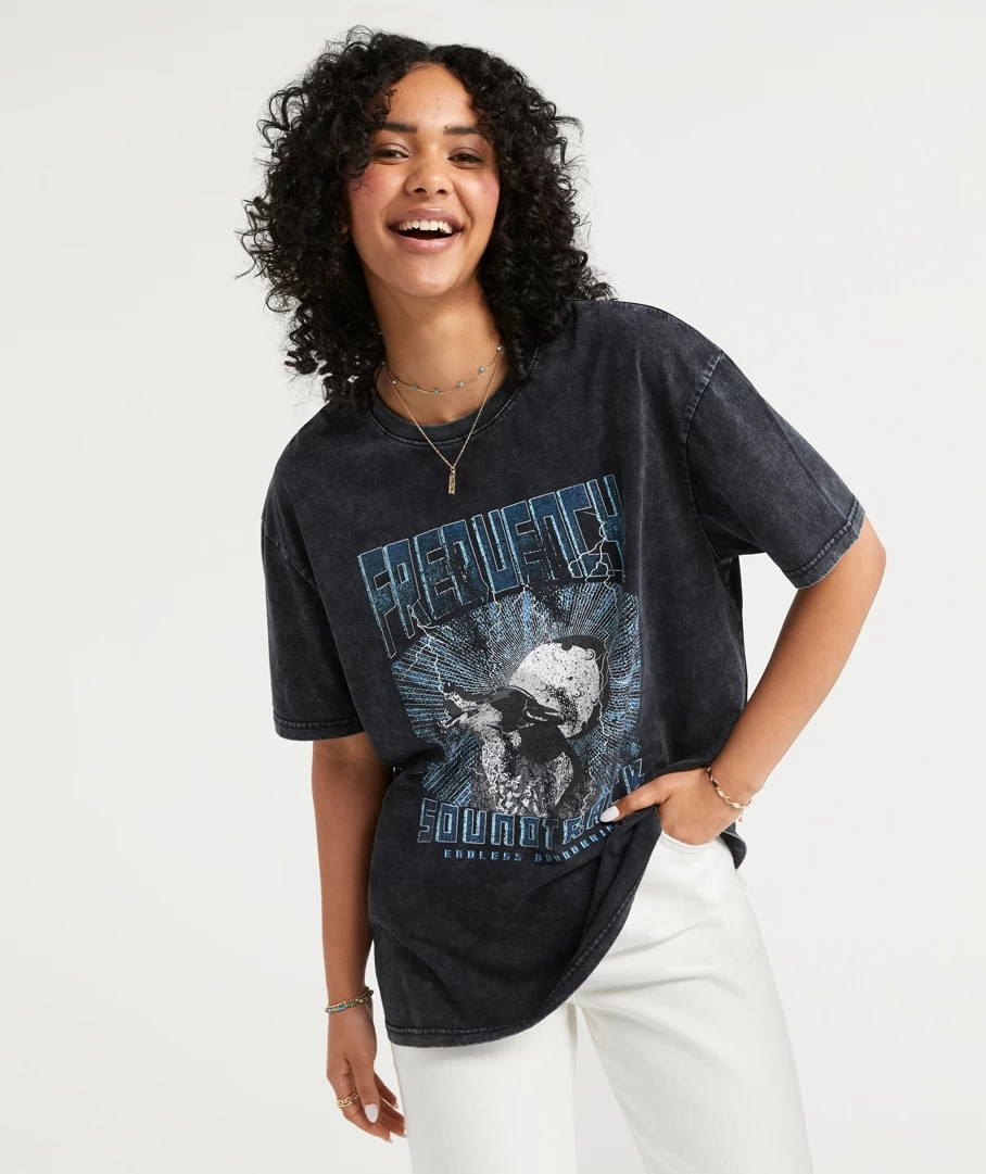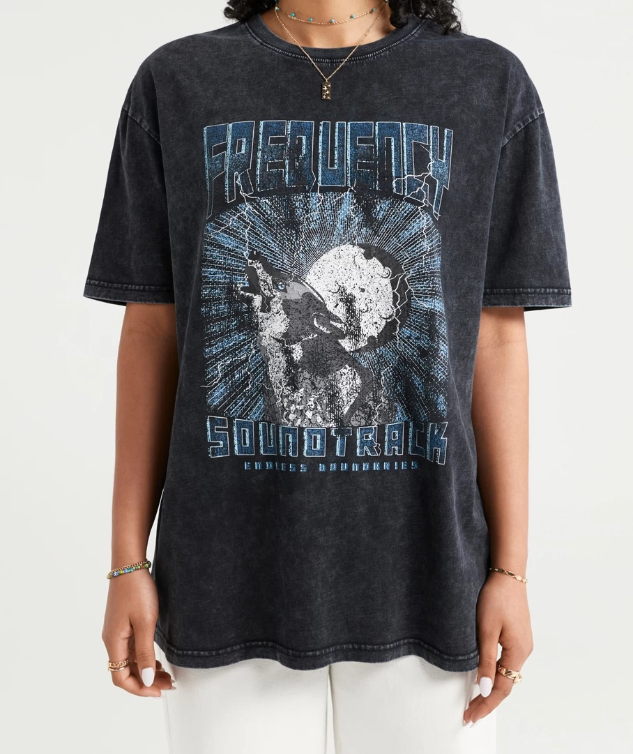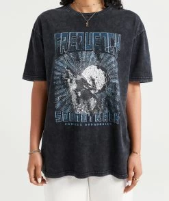 Be set for your casual days with the Frequency Boyfriend Graphic T-Shirt. Made with 100% cotton, oversized fit, full length, short sleeves, washed black colour and graphic in the center. Pair with your fave denim bottoms to complete your look.