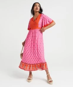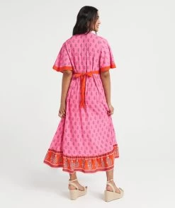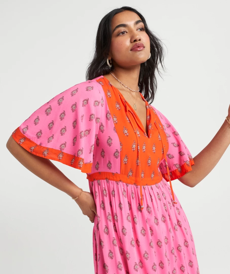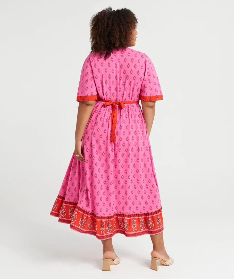 With a paisley print all over, the Freya Wide Sleeve Midi Dress gives us all the boho feels we love. Made with a midi length, loose short sleeves, relaxed fit throughout, V neckline and a tie front neckline detail. Pair with a pretty straw bag to complete your look.