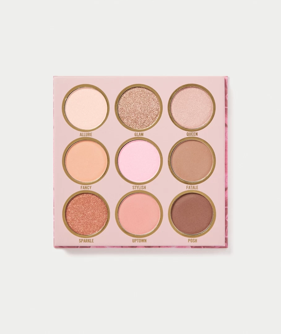 Get your glamour on with this elegant eyeshadow palette. Packed with matte and shimmering shades to enhance your look. Go from day to night with endless combinations. From a subtle wash of colour for added depth, to a decadent smokey eye. The glamour is in your hands. PRO TIPS: Priming the eyelid prior to eyeshadow application will ensure a silky, long lasting finish. To lift and extend the eyes, begin by applying eyeshadow along the lash line and colouring upwards towards the upper eyelid.