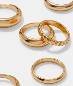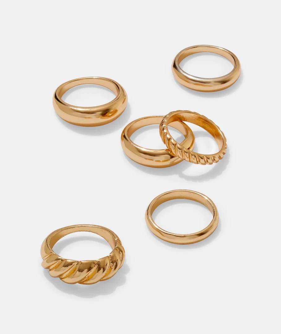 We are all about layering this season and that includes on your fingers! This pack features gold-coloured rings, all in different shapes and sizes. Wear them all at once or mix and match.