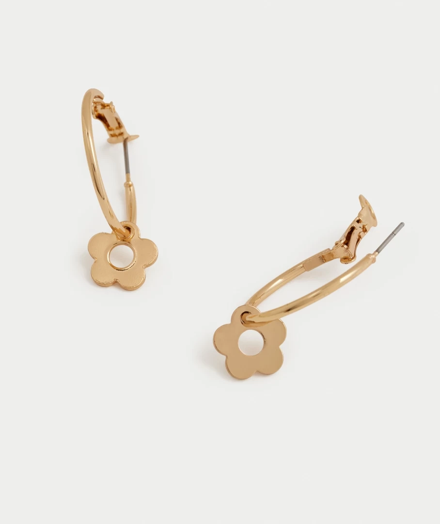 Add a fun and playful feature to your outfit with these cute Gold Daisy Hoop Earrings. Featuring a gold daisy.