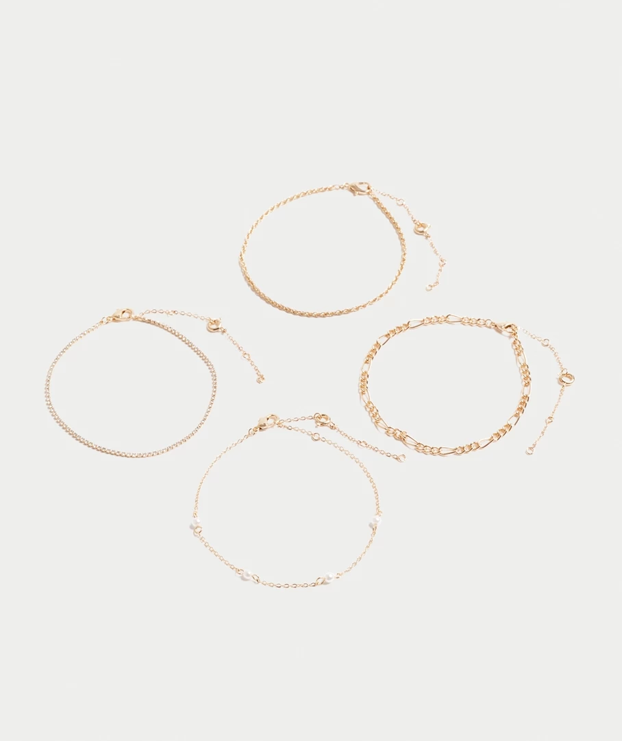 Add some fun to your look with the Gold Minimal Chain Anklet Pack. It features 4 anklets all with gold coloured chains.