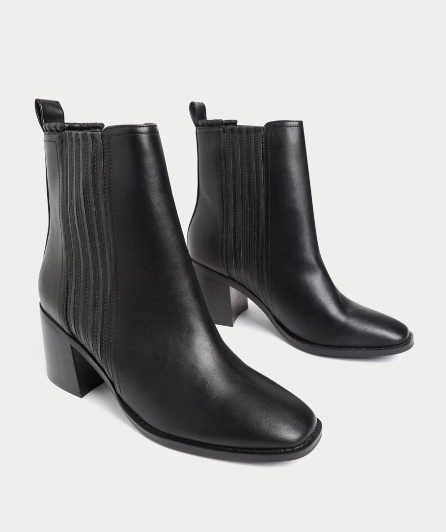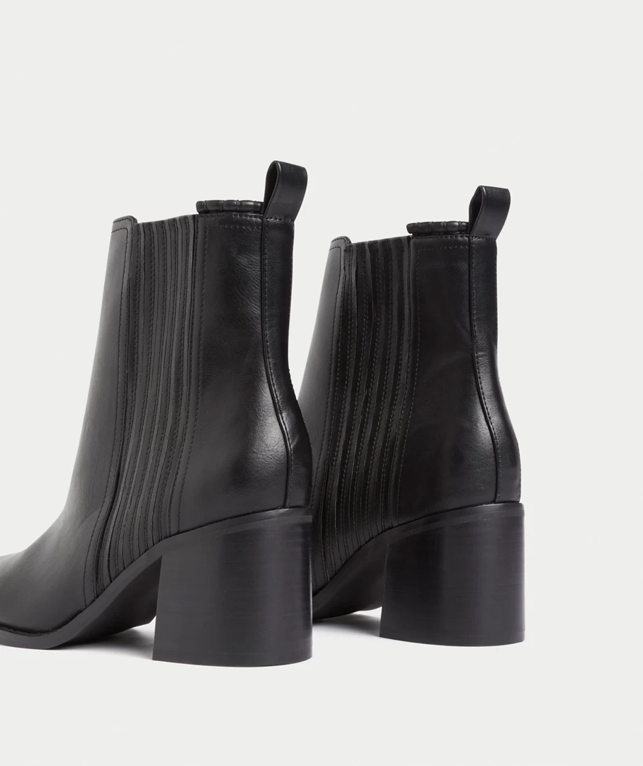 The Harper Block Heel Boot will be your new go to boot! Easy to match and wear every day. Made with a textured black material all over, side gusset detailing, block heel and rounded toe shape. Style with dresses or jeans for a full look.