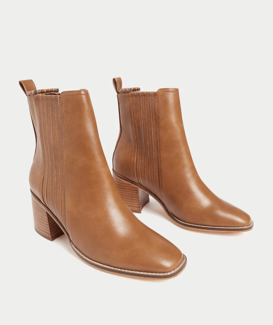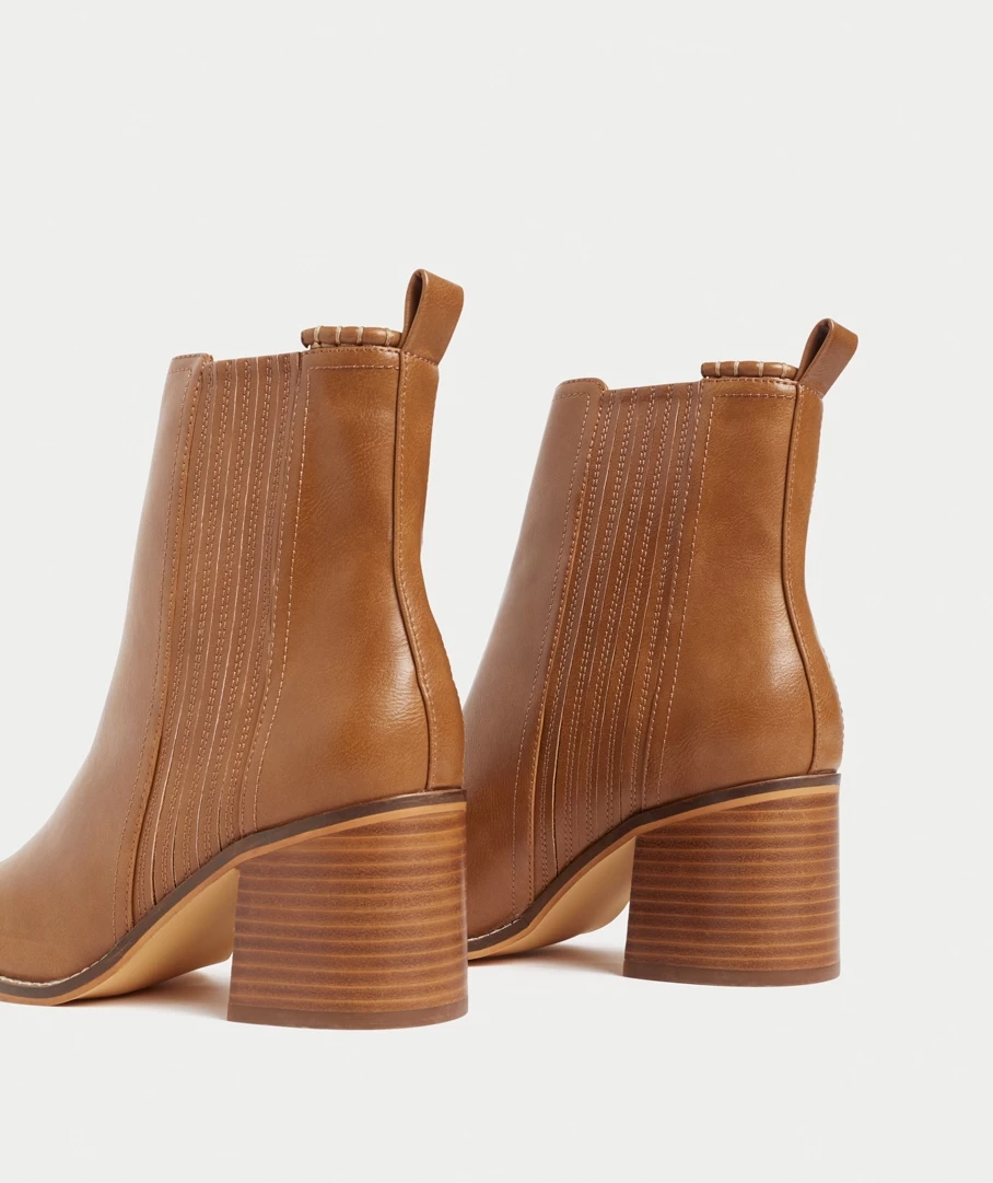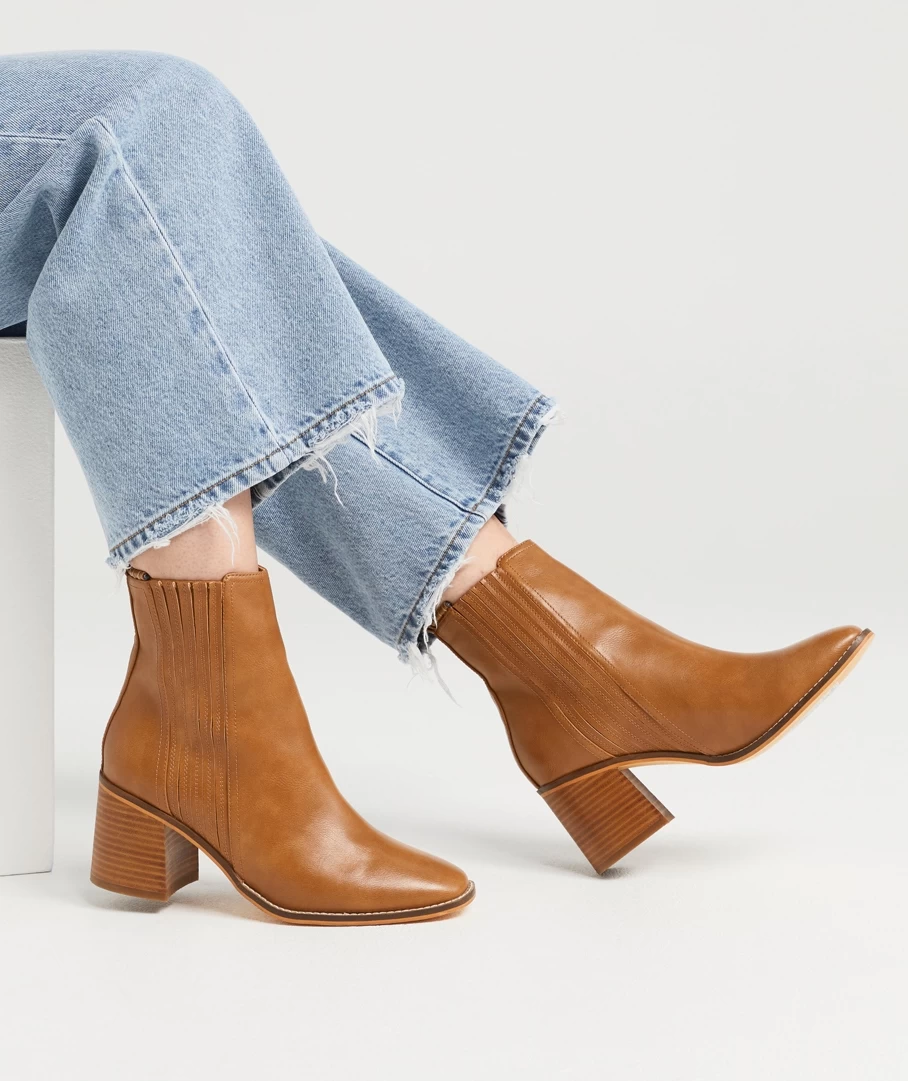 The Harper Block Heel Boot will be your new go to boot! Easy to match and wear every day. Made with a textured tan material all over, side gusset detailing, block heel and rounded toe shape. Style with dresses or jeans for a full look.