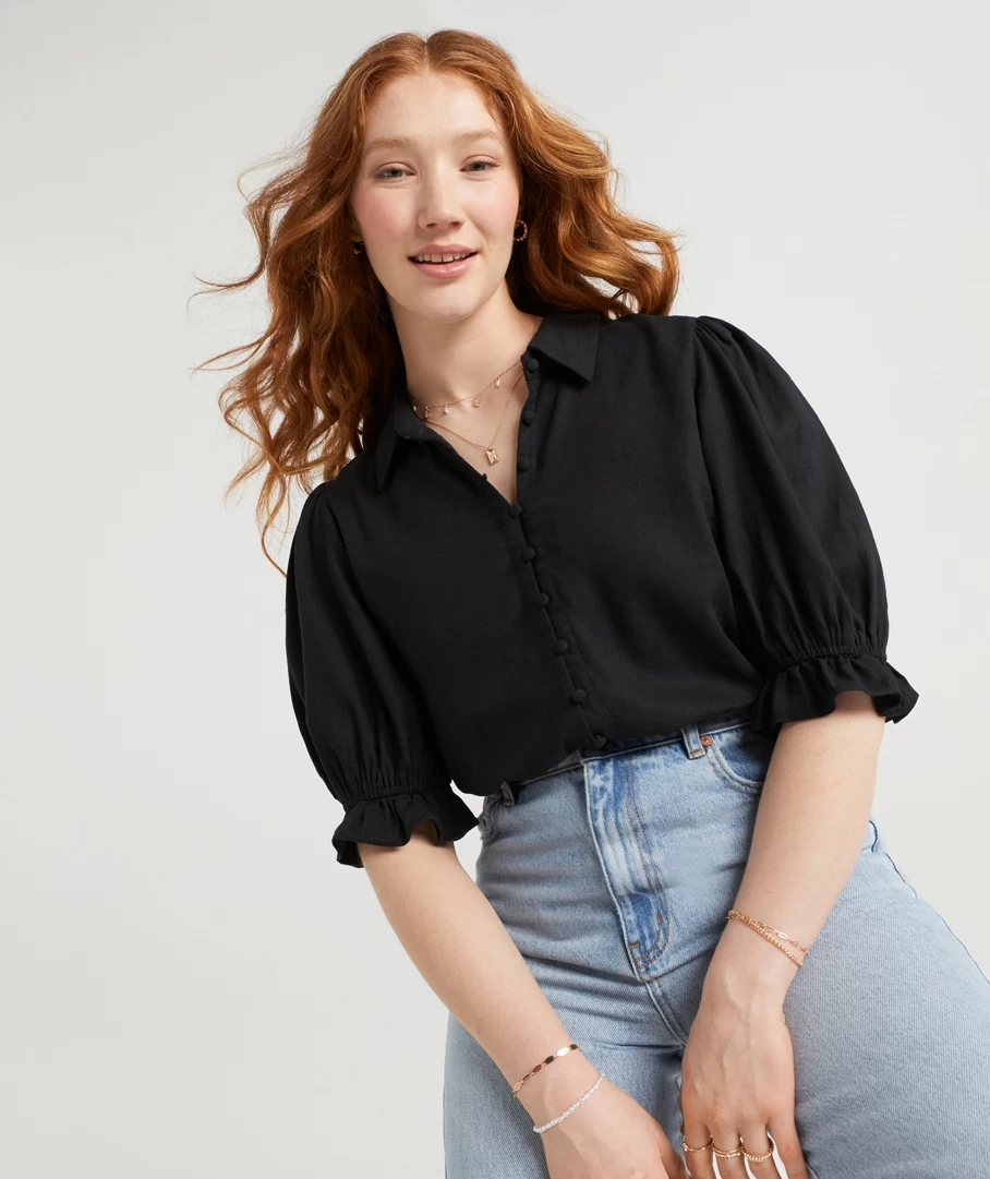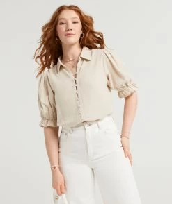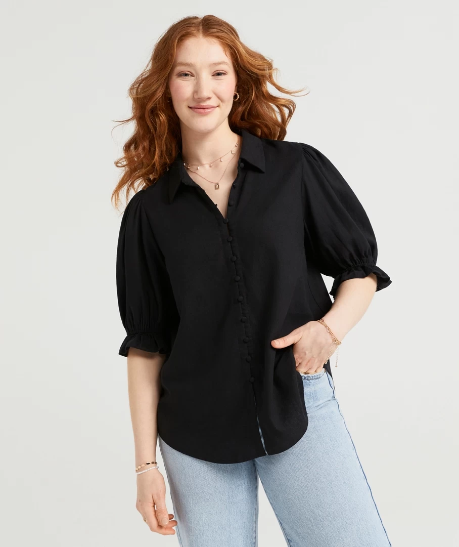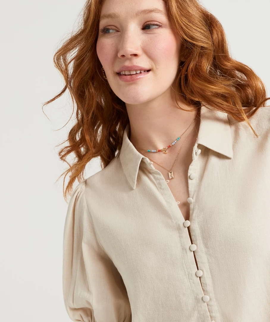 Our beloved Frankie Linen Shirt is here in a fun summer season version -The Harper Linen Ruffle Sleeve Shirt. With a linen blend, short sleeves with a ruffle hem, fabric buttons down the front, full length and pretty block colours. Pair with a pretty bag to complete your look.