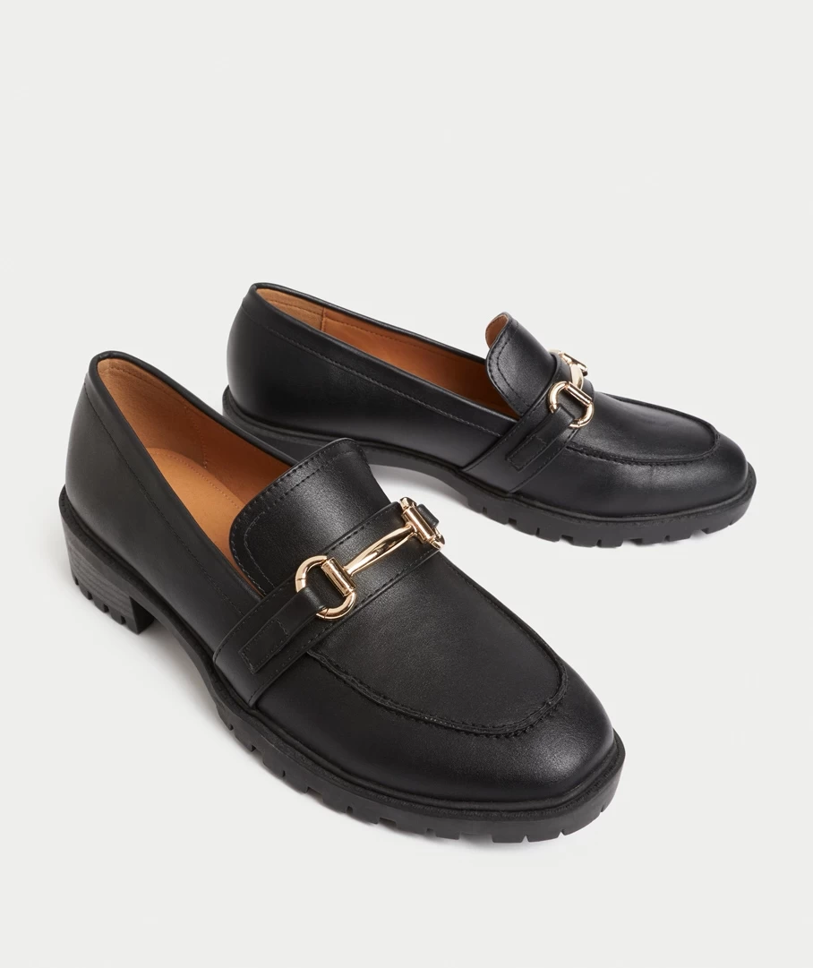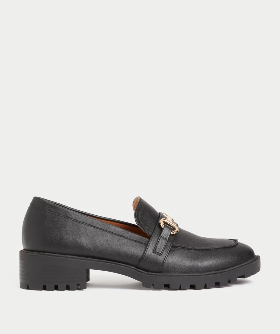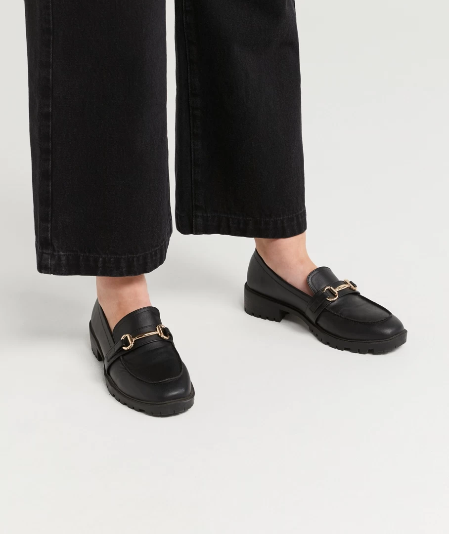Take your day to new levels with the Isabelle Loafer. Designed for the fashionable and on trend, made a soft black materal, featuring a gold detail and slip on style loafer. Perfect for pairing with pants or dresses. Add a fun sock for a full outfit.