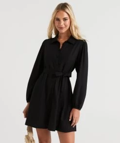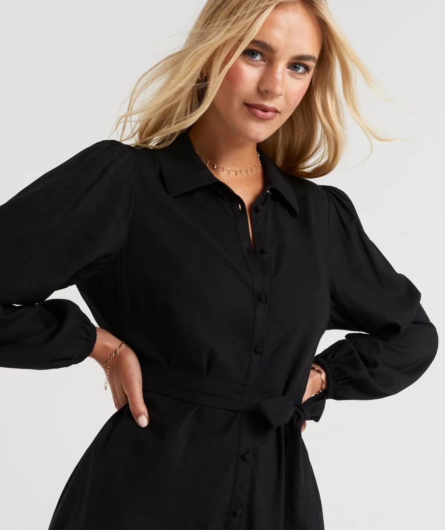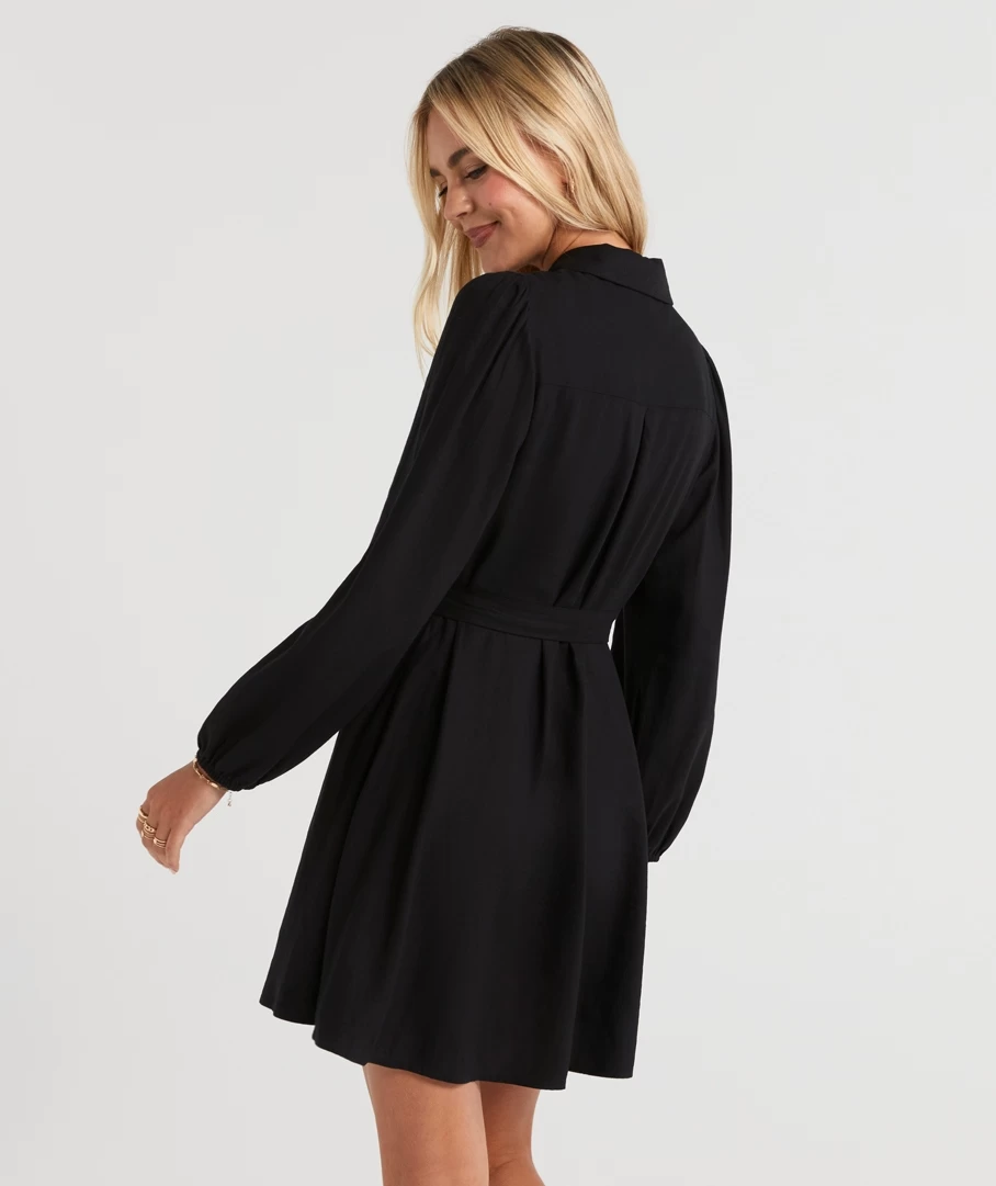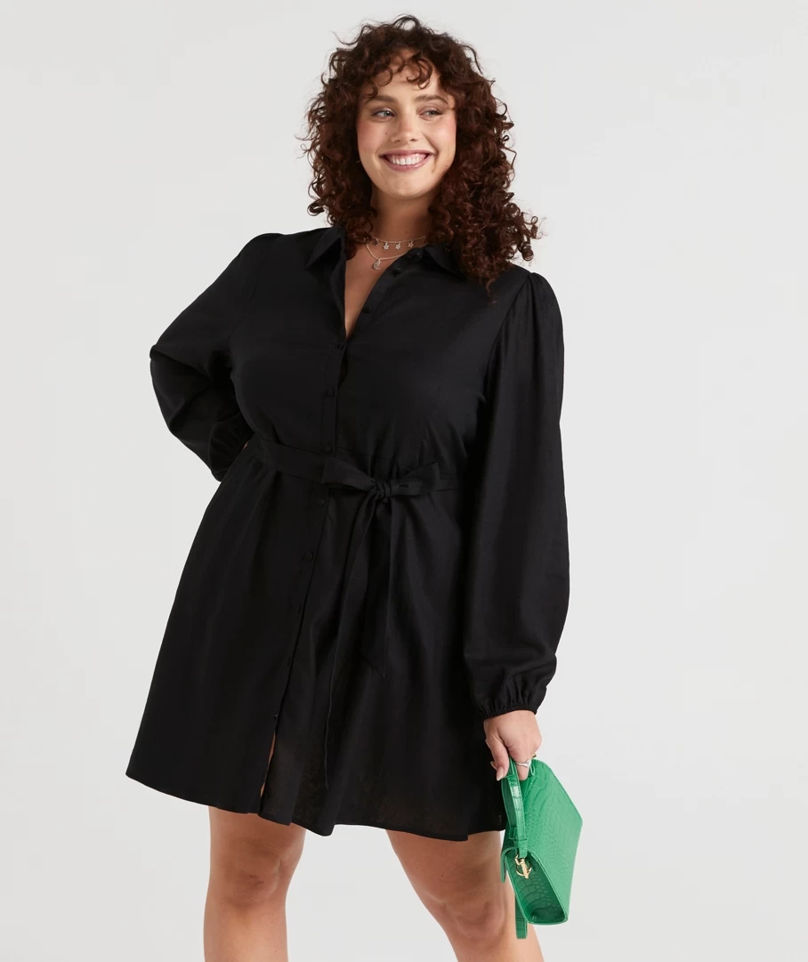 The Jacinta Button Down Mini Dress is a timeless must have piece. Made from a linen blend, featuring classic shirt details such as buttons down the front and a tie waist belt. Freshen your look with a glam make up look.