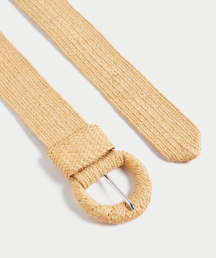 The Josie Tan Woven Waist Belt features a straw woven fabric all over, fabric buckle and loop hole.