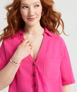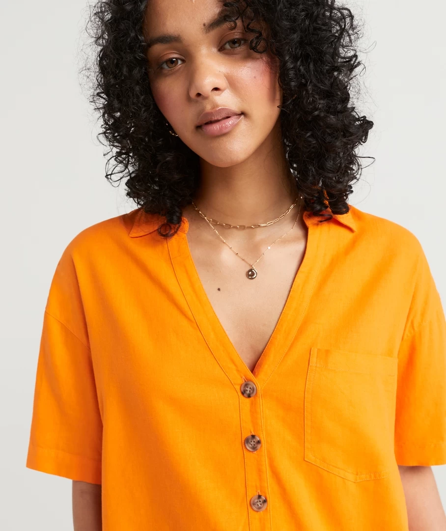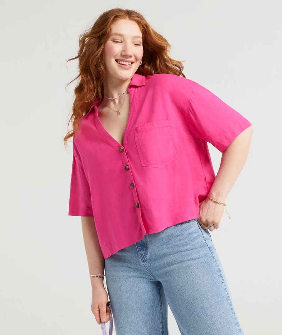 You will be reaching for the Kenzi Linen Cropped Shirt all season long. Made with a linen blend, cropped length, short sleeves, relaxed fit, front pockets and button closure. Add some jewellery to elevate your look.