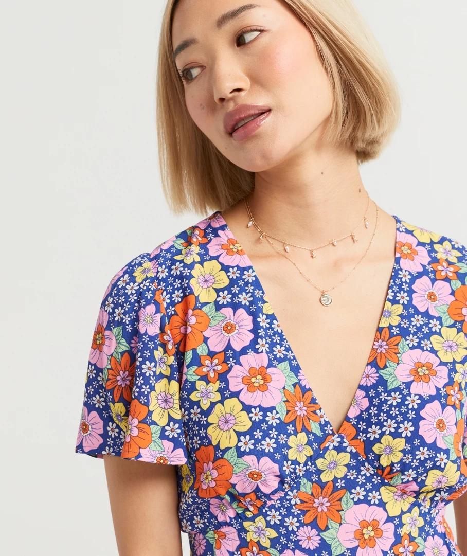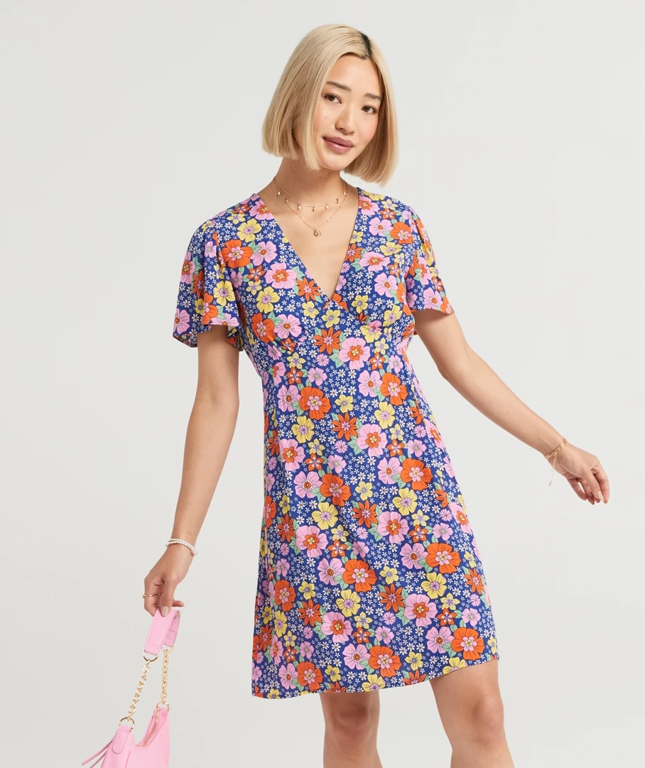 Be effortless in this adorable mini, the Layla Printed Tea Mini Dress. Made with a lightweight fabric, mini length, V neckline, short loose sleeves, A line shape, under garment and back button closure. Add some jewellery to elevate your look.