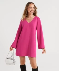 Your new go-to dress option, the Liliana Crepe Mini Dress! With a classic V neck, full length sleeves and in block colours making this the perfect addition to your capsule wardrobe!