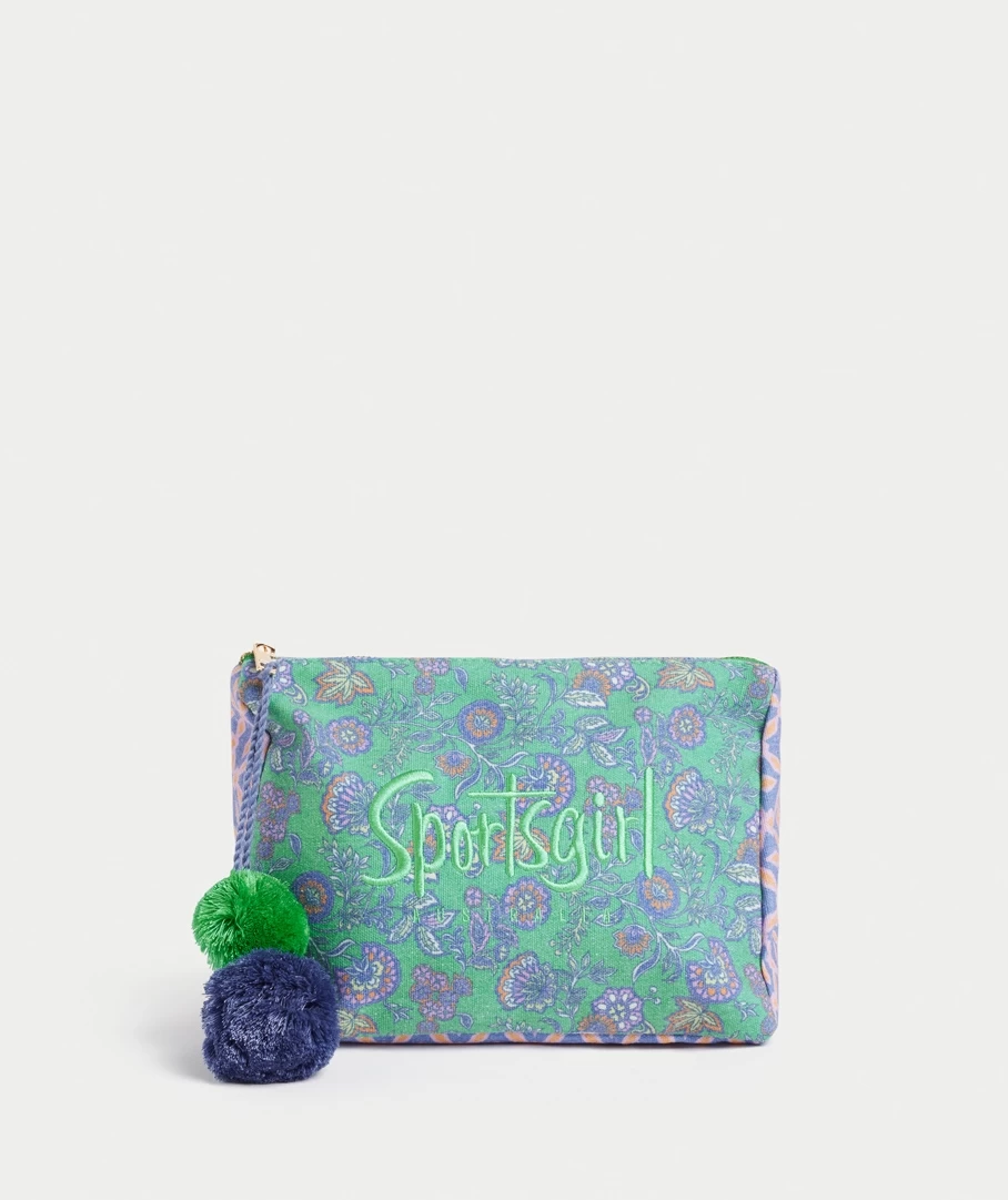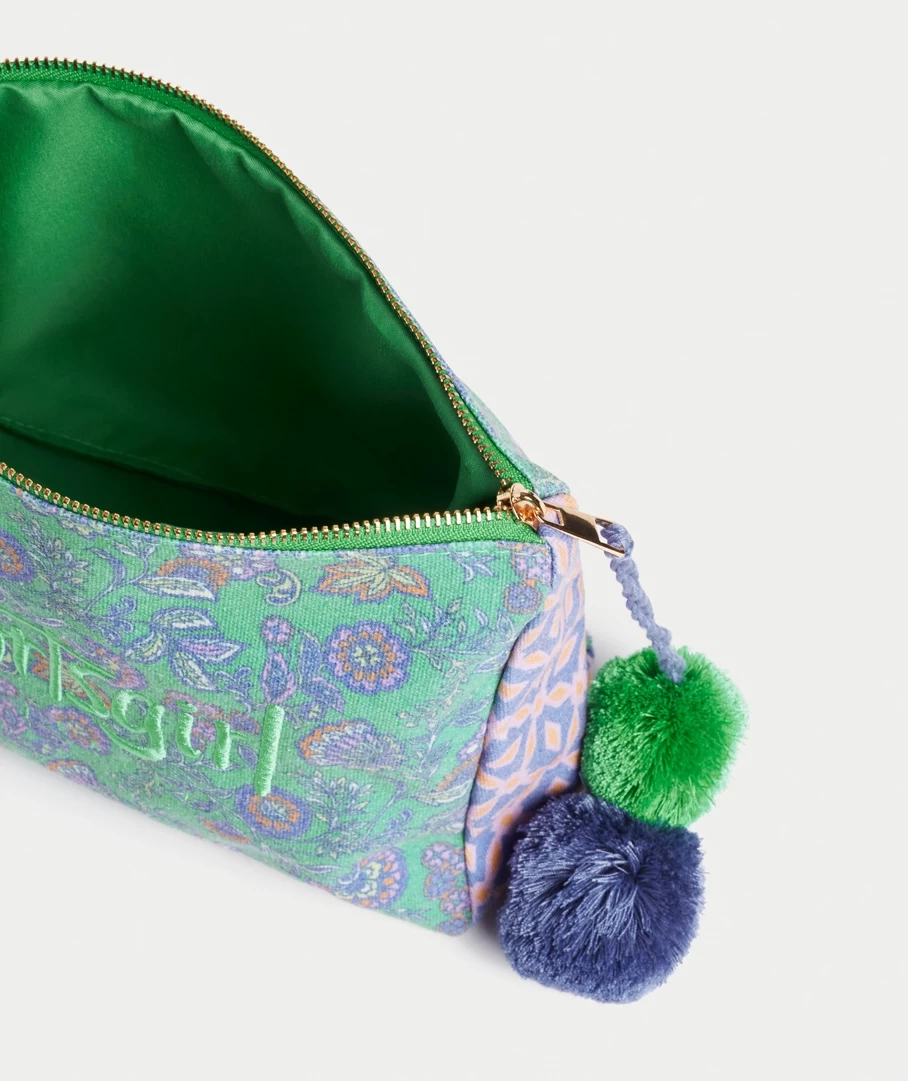 Pack in style with our new Lily Printed Pom-Pom Beauty Bag. Featuring floral and geometric printed designed with green lining and the signature Sportsgirl logo on the front. Benefits: Store all your makeup, brushes and skincare faves. Easy to pack for your next trip away or to store nearly at home. Care: Handwash in warm water with mild detergent. Dry inside out in shaded, well ventilated area. Do not wring. Do not bleach. Do not dry clean. Do not tumble dry. Warm iron on reverse side. Allow to dry fully before storing.