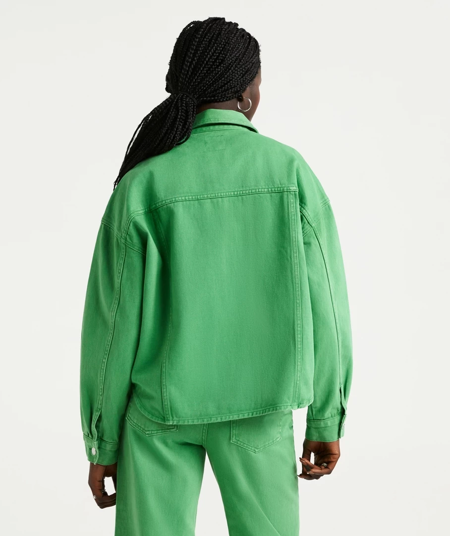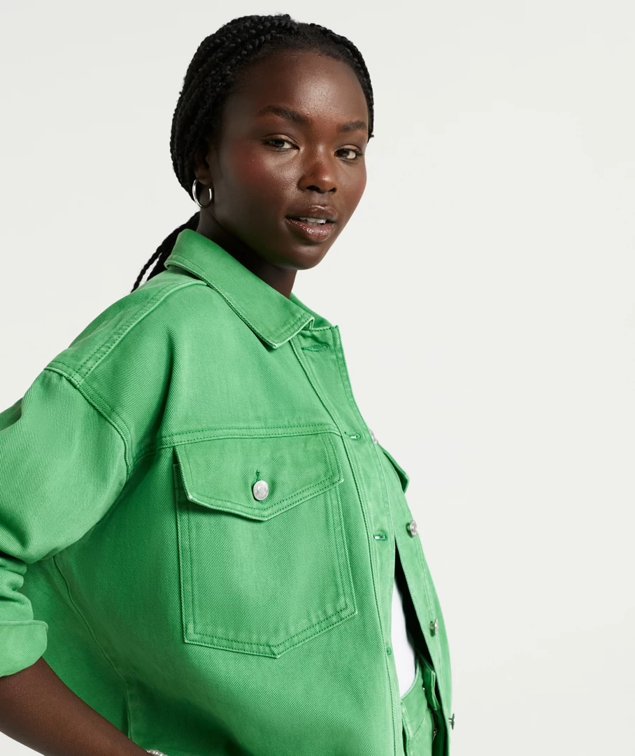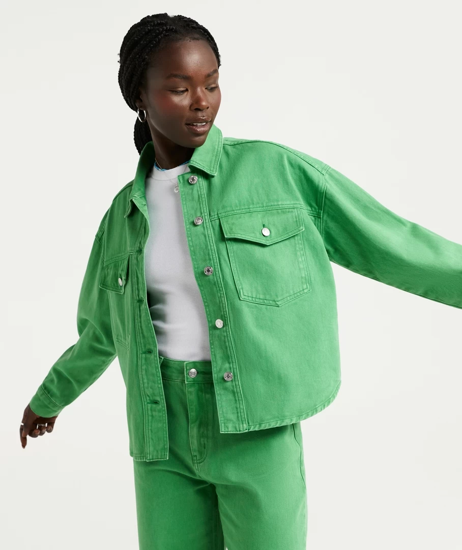 Layer it on those cooler days with the Maxie Coloured Denim Shacket. Made with 100% cotton, oversized fit, front pockets, button closure and green colour. Pair with a crossbody bag for a casual look.
