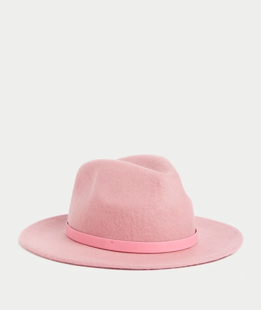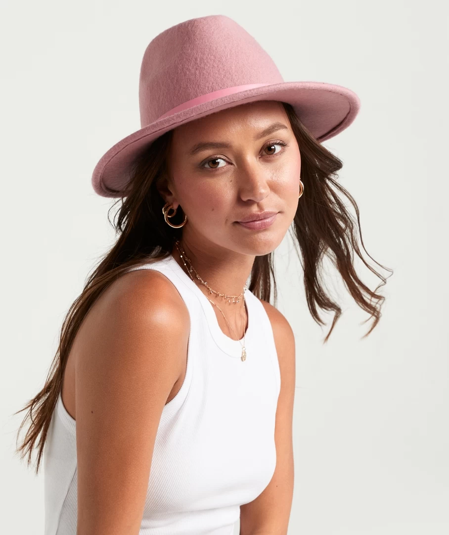 The Mia Felt Panama features a pink colour, super soft texture, 100% wool and cream tonal ribbon. Wear it casual during the day or glammed up for a dressier look.