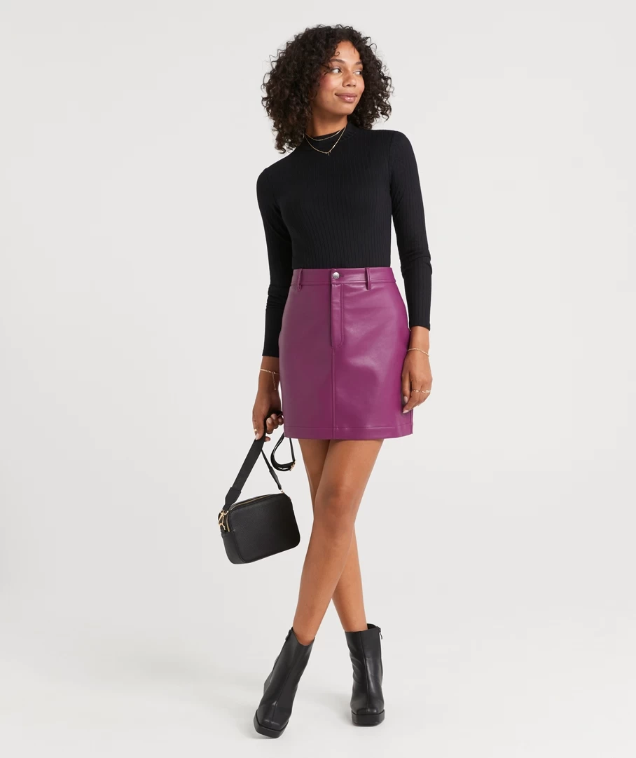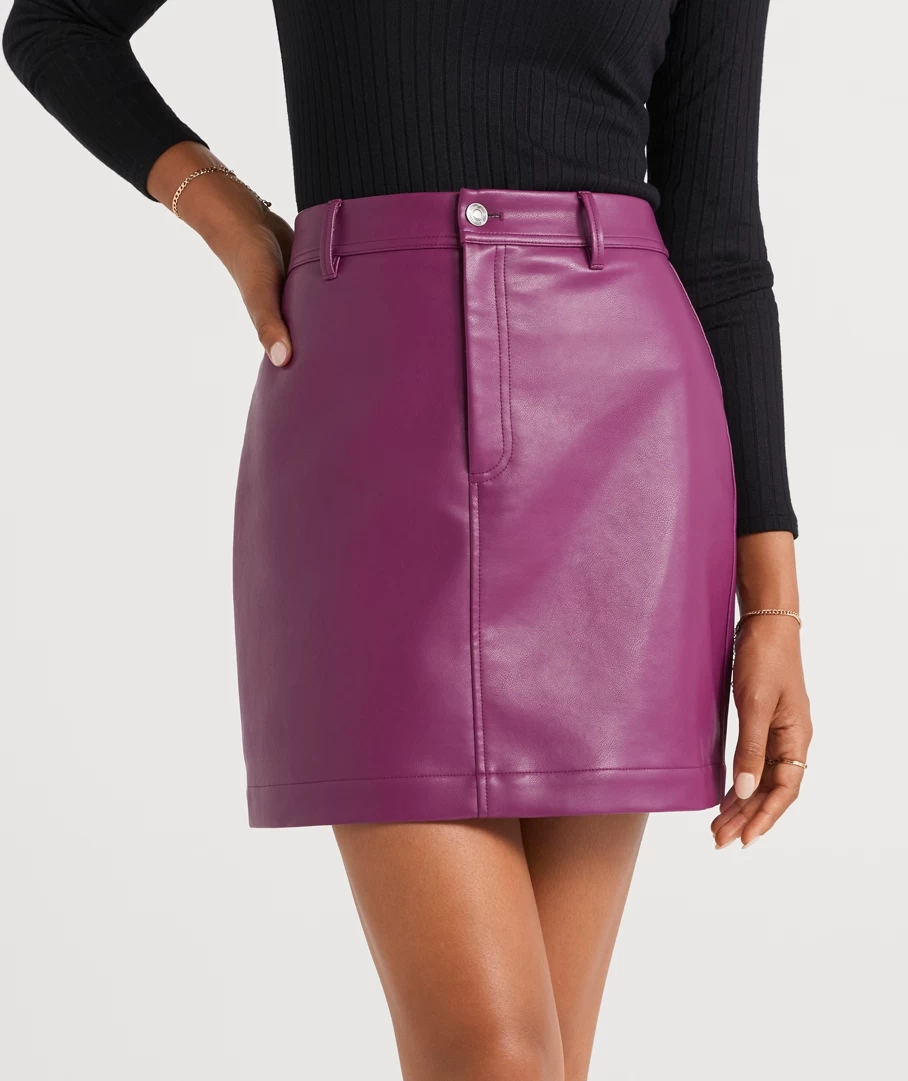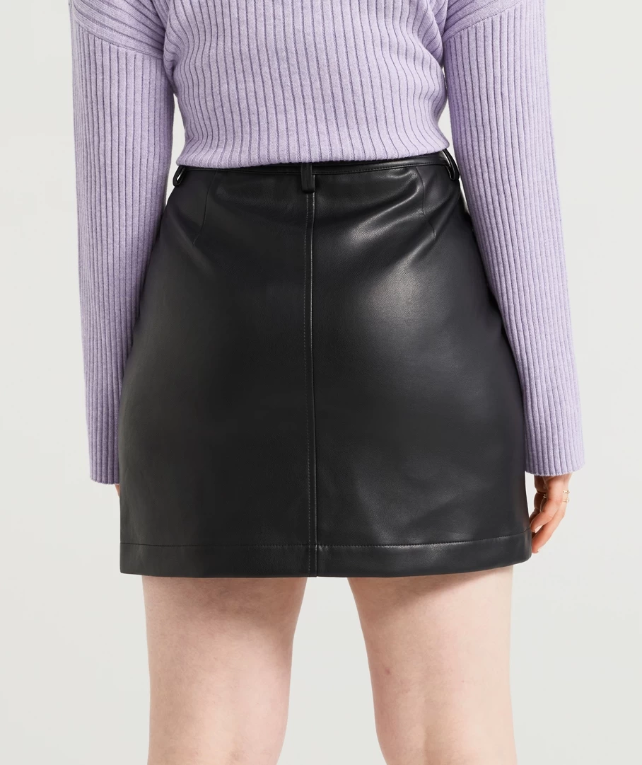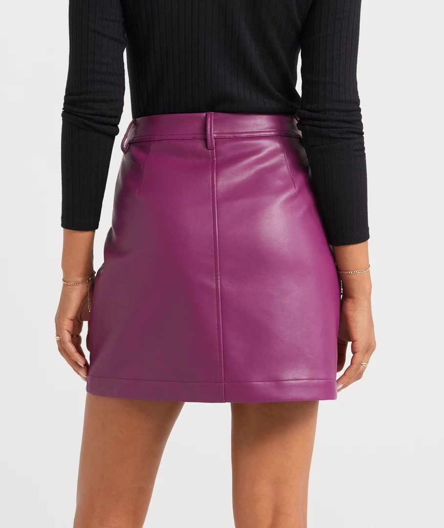A timeless wardrobe essential, wear the Millie PU Mini Skirt casual or glam! Made with a faux leather feel, mini length, belt loops and button closure. Style with a graphic t-shirt for a casual look or with heels for glam.