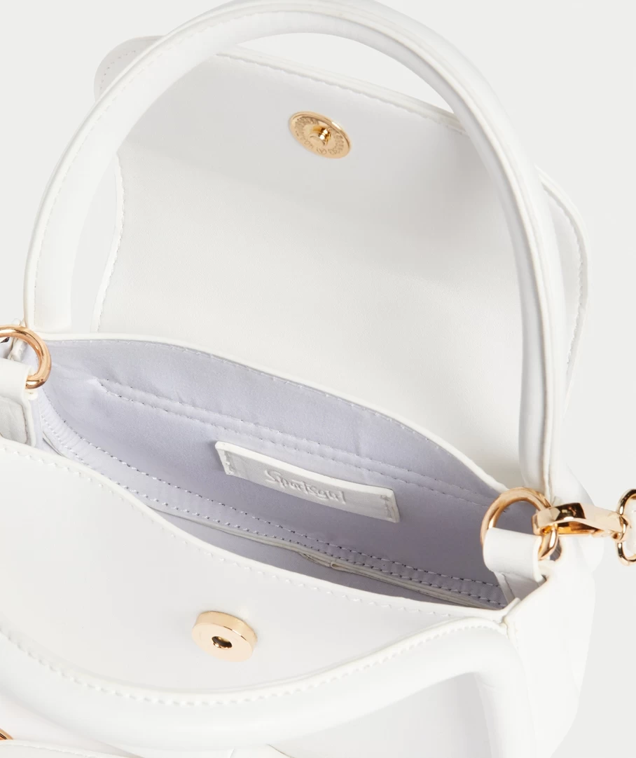 Stand out from the rest with the Mischa Crossbody Bag. Made with a leather look, hand straps, removable and adjustable crossbody strap, gold metal detail and flap over magnetic closure.