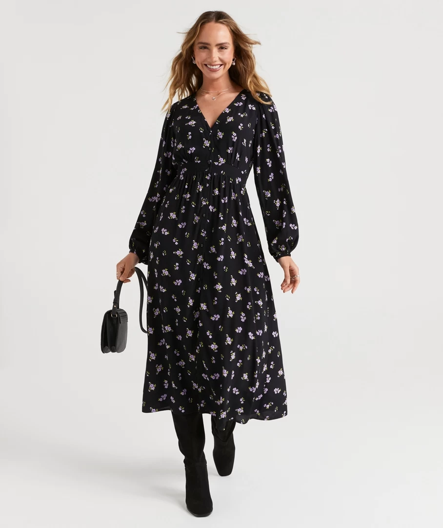 Go from day to night with the Molly Button Down Midi Dress! With a full length sleeve, midi length and floral print. Add some boots to complete the outfit.