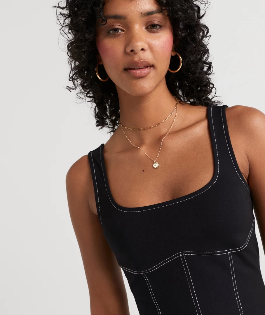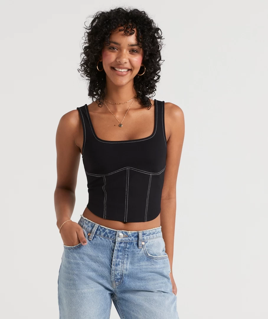 Myra Contrast Stitch Corset Top is the perfect piece to spice up your night. The stitch corset cutting is flattering for all. Style it with your favourite tailor pants, blazer and you are good to go!