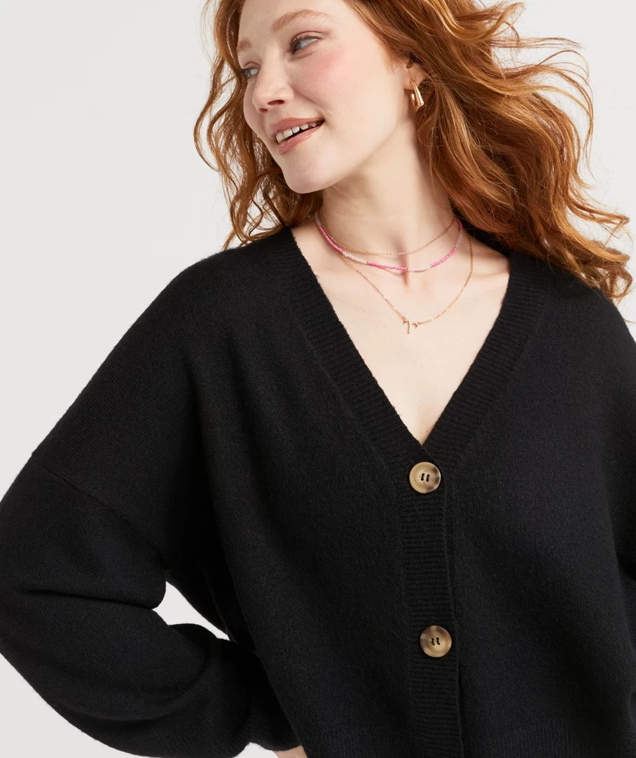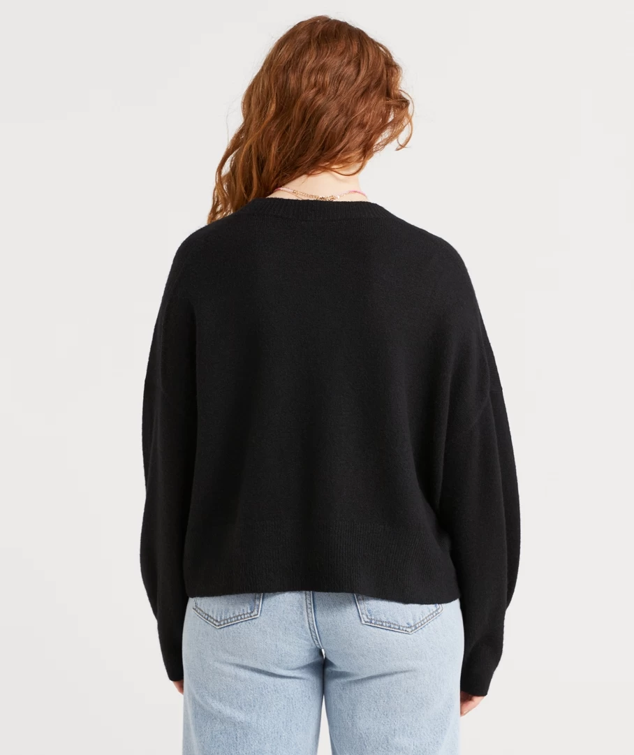 Add to the essentials with the Natalie Button Knit Cardi. Made with a cotton blend, cropped length, puff sleeves, buttons down the front and block colours. Pair with your fave denim bottoms for a casual look.