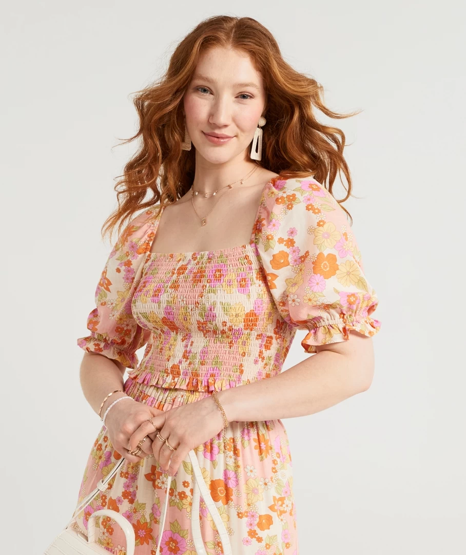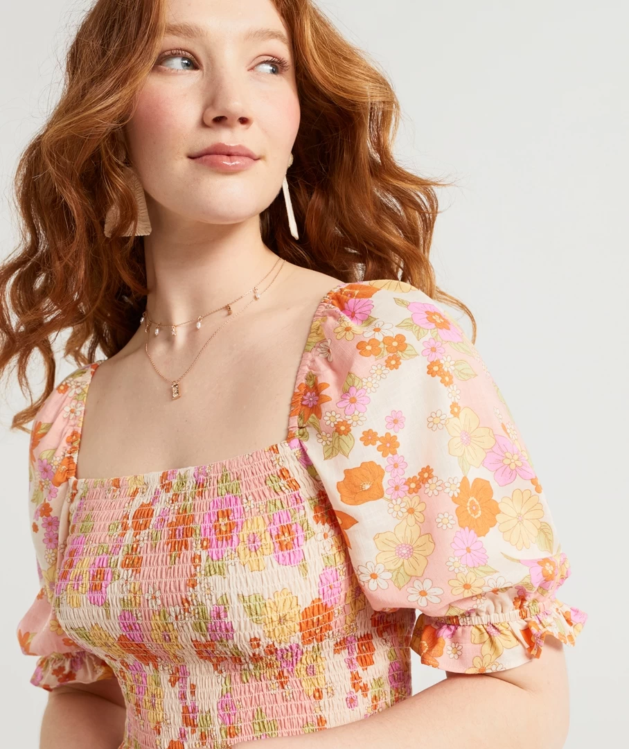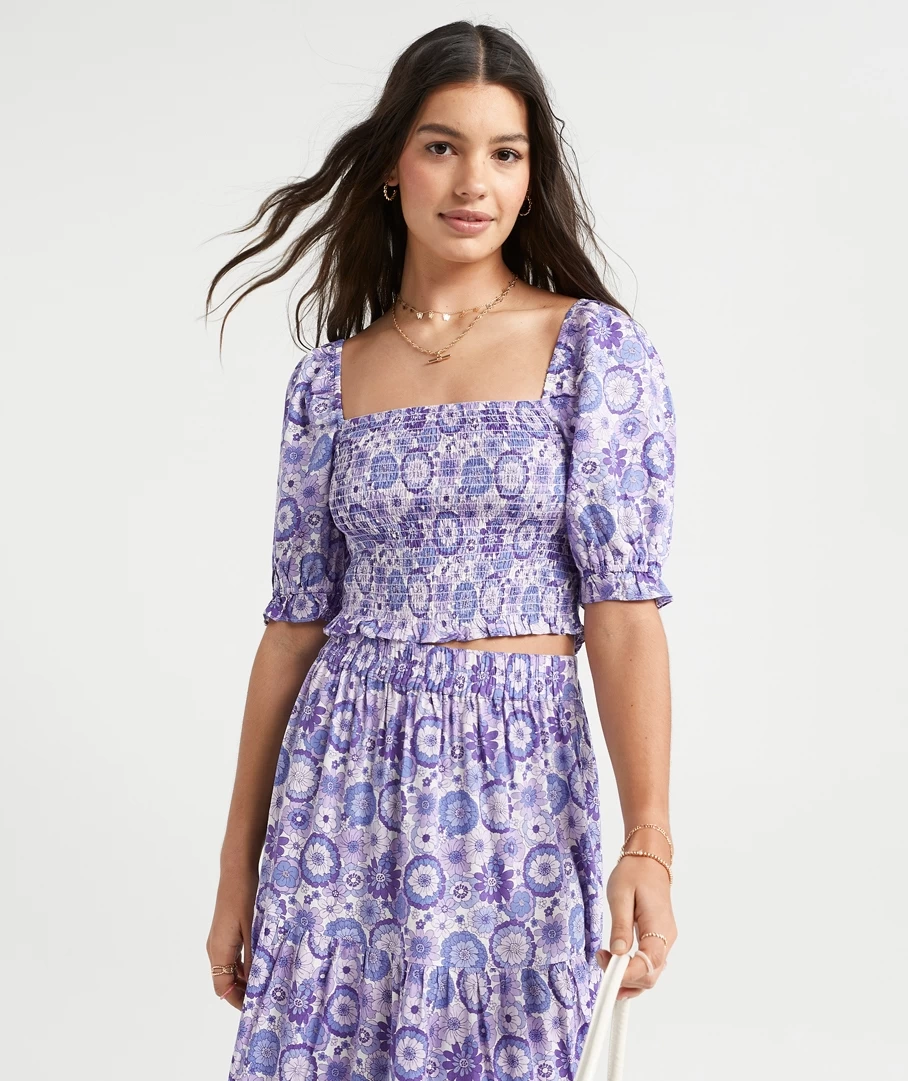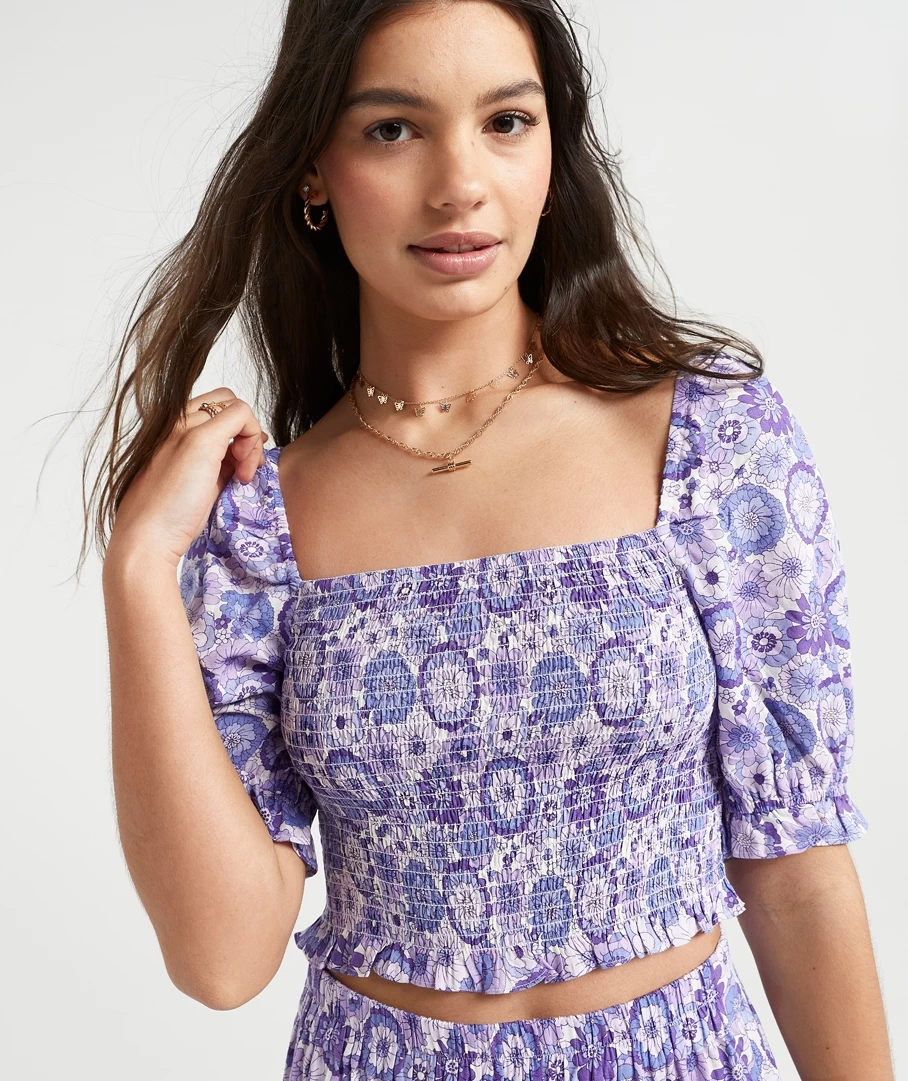 Inspired by our love of florals, we have the Nova Shirred Top. Made with lightweight fabric, short puff sleeves, cropped length, shirred at the body, square neckline and pretty floral print all over. Pair with its matching skirt for a stunning set look. Add a cute bag to complete your look.