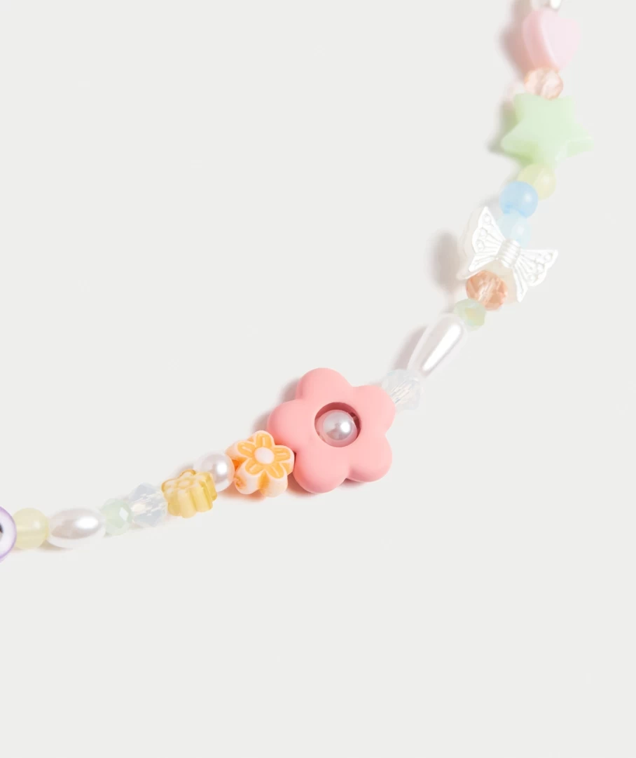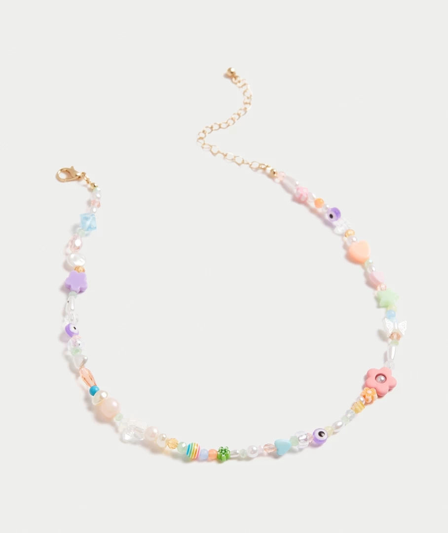 The Pastel Bead Daisy Necklace features pastel coloured beads all along the chain.