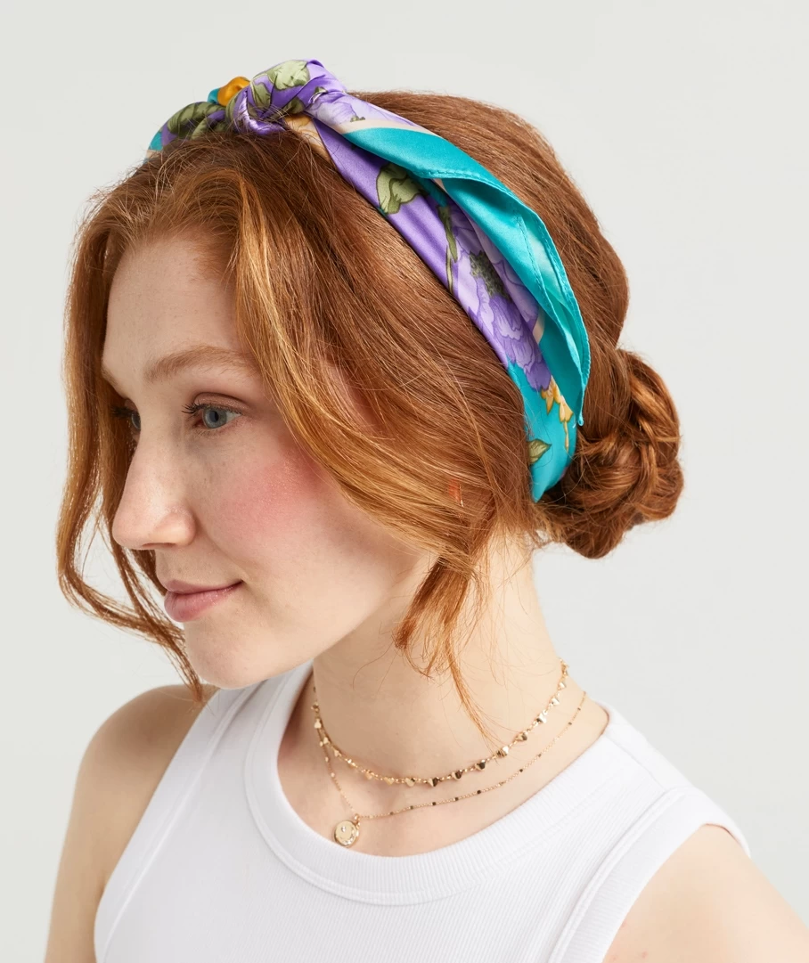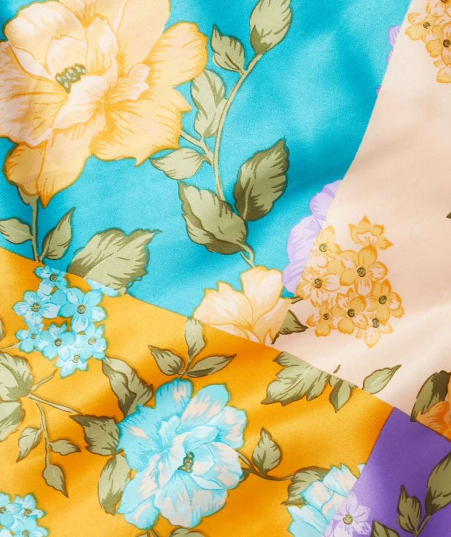 With a matte satin feel, the Patchwork Floral Satin Scarf will elevate any look. In one size, style the scarf multiple ways! Perfect as a hair accessory, tie on your handbag or even wear it as a neck scarf.